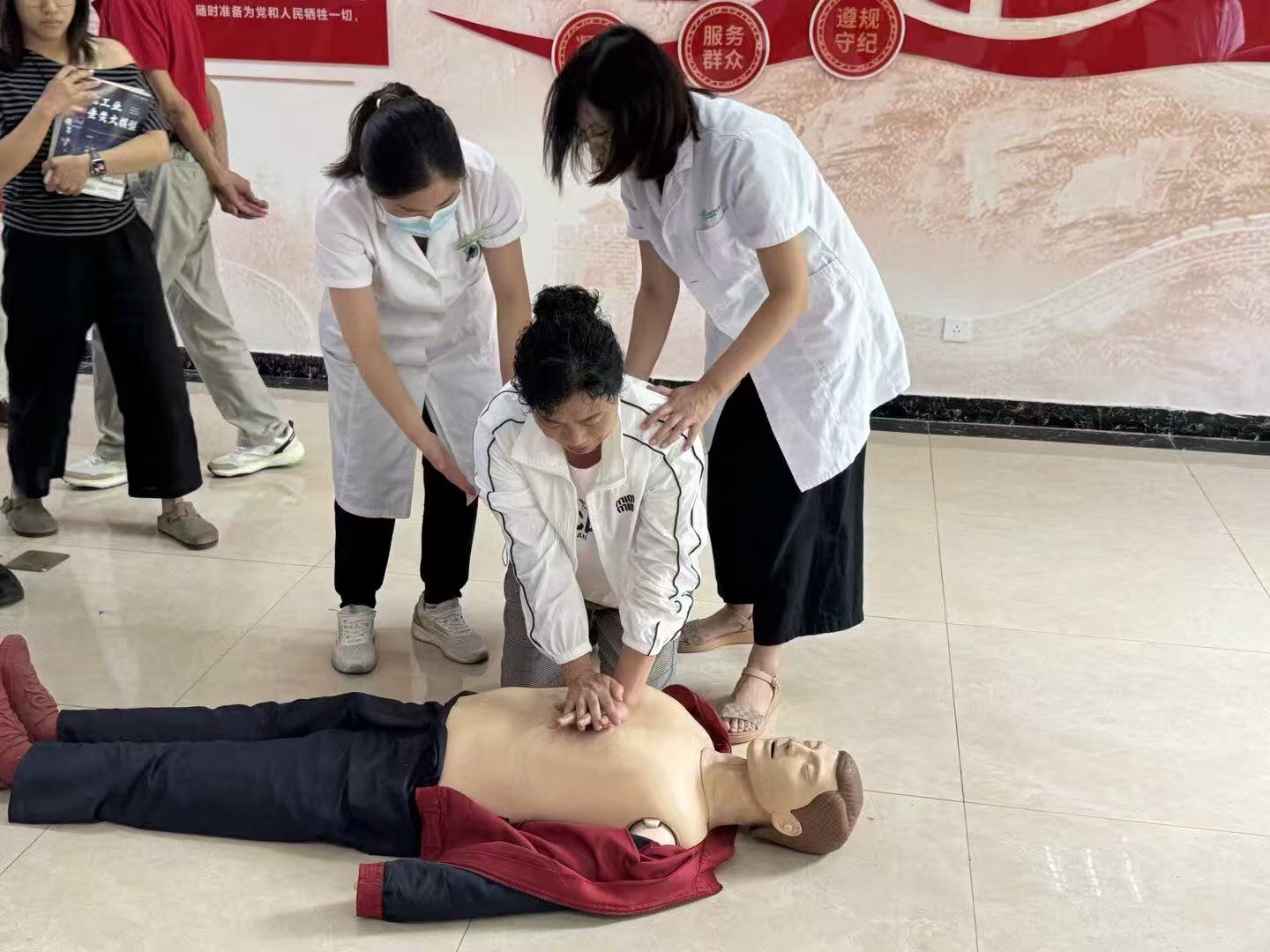 党课宣讲后,泰达医院重症医学科主治医师韩瑞丽开展了心肺复苏科普讲座。韩大夫通过生动讲解、模拟演示,传授心肺复苏操作要点与急救知识,并进行义诊,为居民量血压、测血糖,耐心解答健康问题,切实提升居民健康意识与自救互救能力。
