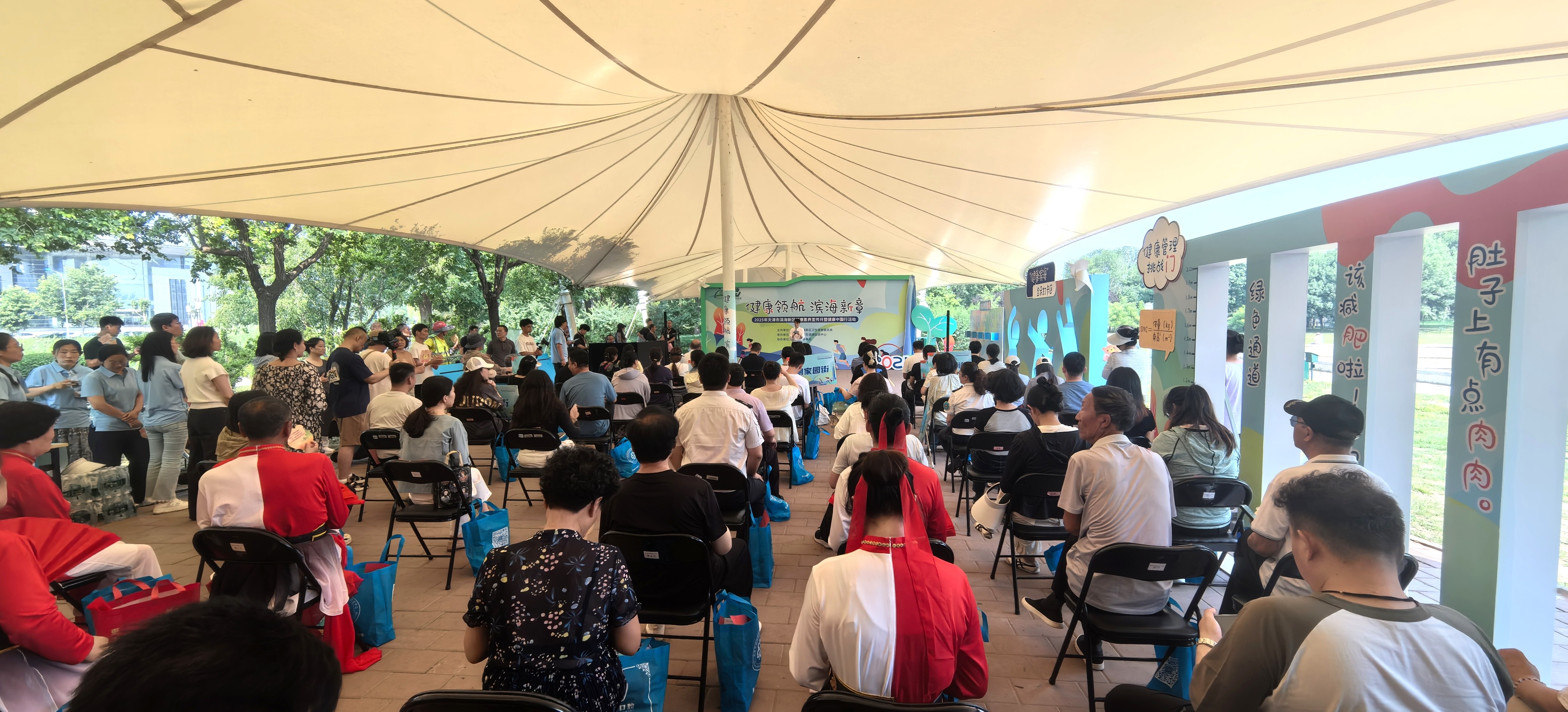津滨网讯(记者 魏薇 戴枭翔 摄影报道) 6月24日,由滨海新区卫生健康委主办,滨海新区卫生健康促进中心承办,泰达街道办事处协办的“健康领航 滨海新章”2025年滨海新区健康素养宣传月暨健康中国行游园活动,在泰丰公园举行。