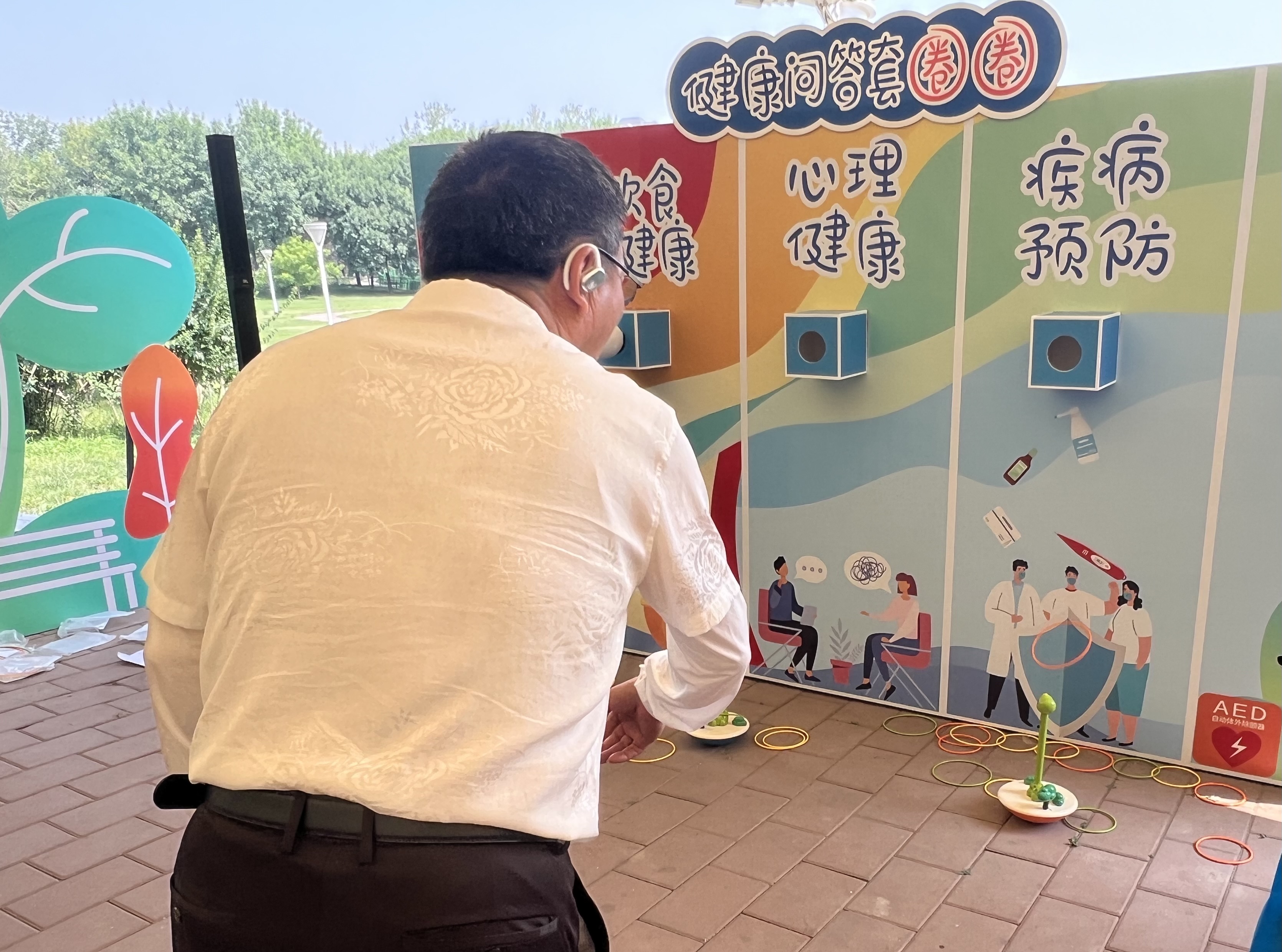 活动现场,游园项目丰富多样、精彩纷呈。健康问答套圈圈、健康管理挑战门、健康笑脸每一天等互动体验环节将健康要点可视化,让居民们在游戏中了解科学健康知识。现场向居民发放活动集章卡,居民参加各个互动体验环节获得印章,集齐六枚印章即可获得活动纪念奖品,众多居民踊跃参与,热情高涨,现场欢声笑语不断。参加活动的居民白女士说:“活动形式特别新颖,对我们居民来说是了解健康知识的好机会,能够提升我们的健康素养。”