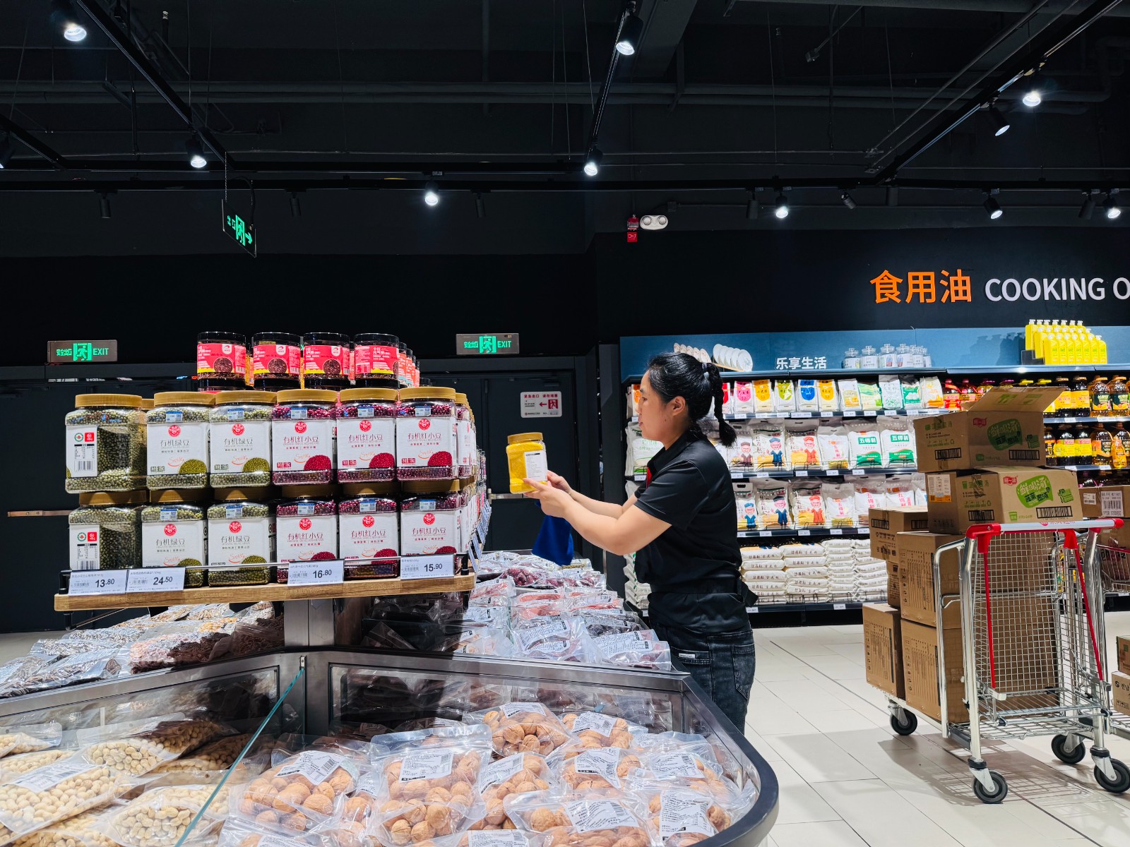 据悉,此次超市调改升级,在购物空间上进行了全面升级,门店也采用全新设计,让货架更低、通道更宽,为消费者营造开阔通透的购物环境。超市收银点位也有所增加,可有效减少消费者排队等待时间,让购物体验更流畅。值得一提的是,新店也将配备多达39项的便民服务设施,如供消费者使用的放大镜、选购冷冻食品使用的防冻手套、免费充电宝、直饮水、茶饮、微波炉、健康测量仪等,并备有应急常备药品,设有宠物寄存处、儿童购物车及残疾人专用设施,处处体现关怀。(永辉超市供图)