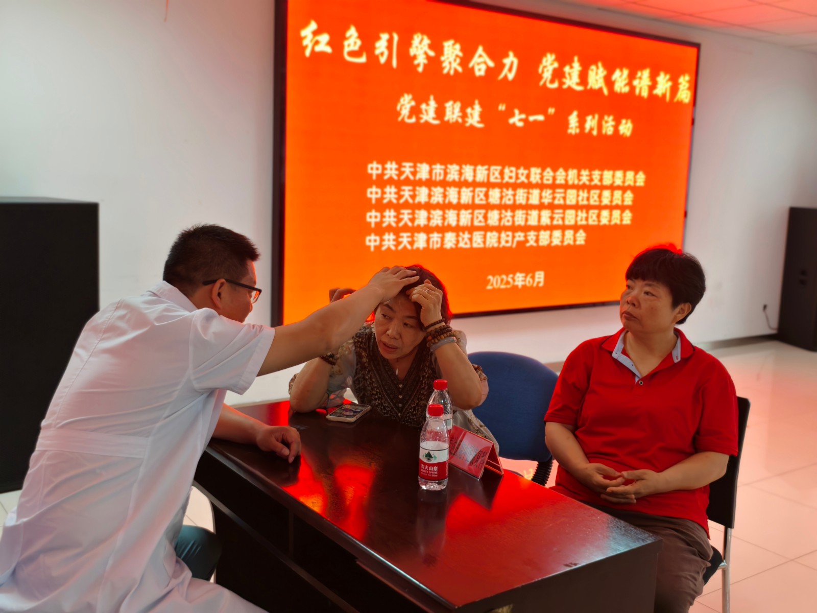 本次活动的显著亮点是将党建活动与专业医疗服务紧密结合。泰达医院妇产科的专家为辖区居民带来了一场关于宫颈癌防治的公益健康讲座,普及科学知识,提升健康意识。与此同时,泰达医院中医康复科主任率领妇产科医护人员,现场为居民提供免费义诊服务,耐心解答健康疑问,进行基础诊疗。区妇联也同步设立宣传点,围绕维护妇女儿童合法权益、困难妇女救助政策、男女平等基本国策等主题,开展了面对面的宣传宣讲,将政策和服务送到群众家门口。