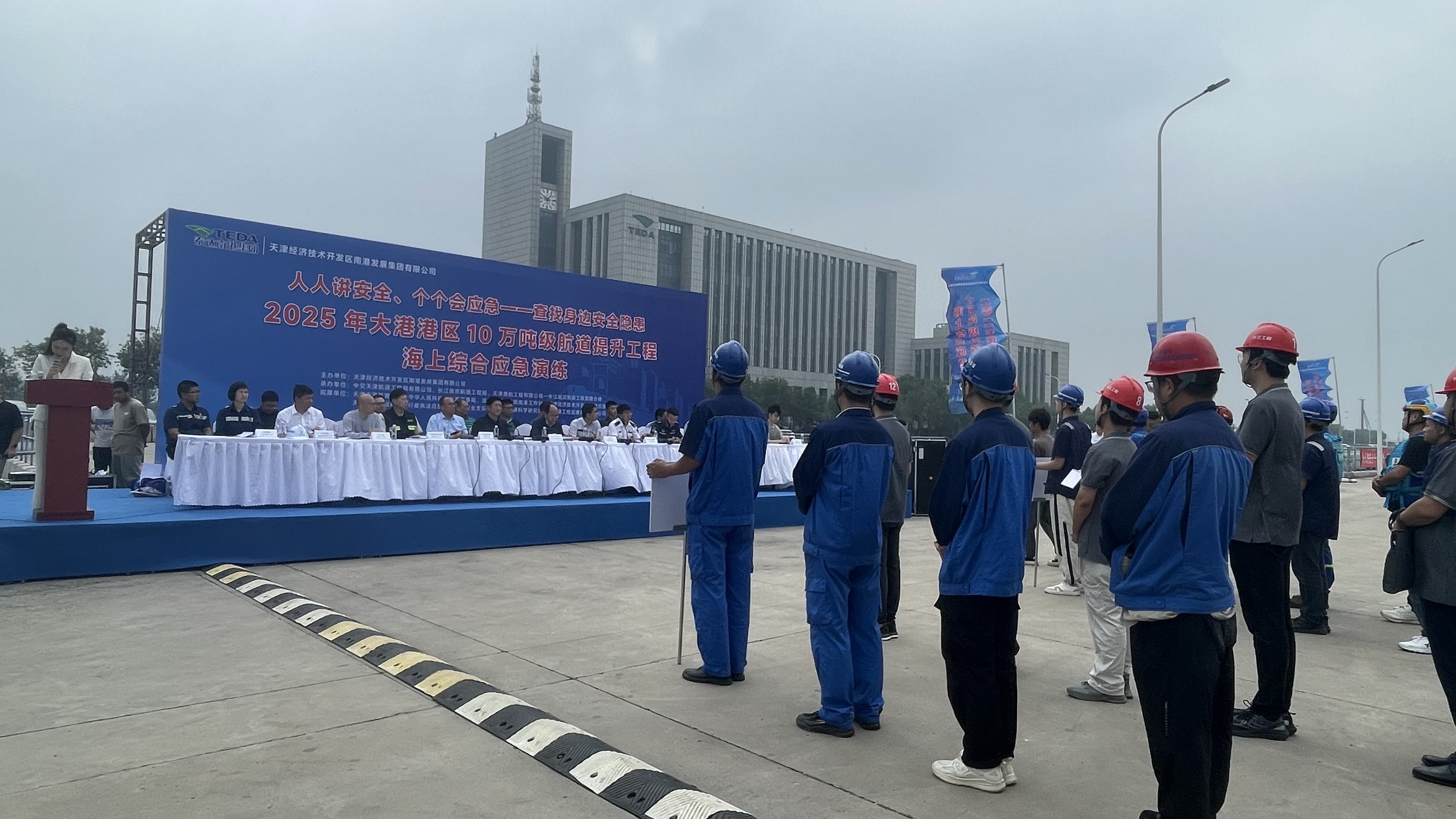 “本次演习的现场指挥高效有序,处置措施精准到位,能够切实增强工程参建各方的忧患和责任意识,提高他们应对船舶碰撞、消防、救生、溢油等突发事件的应急处置能力,为工程有序推进保驾护航。”天津泰港建设有限公司副总经理李开振告诉记者。