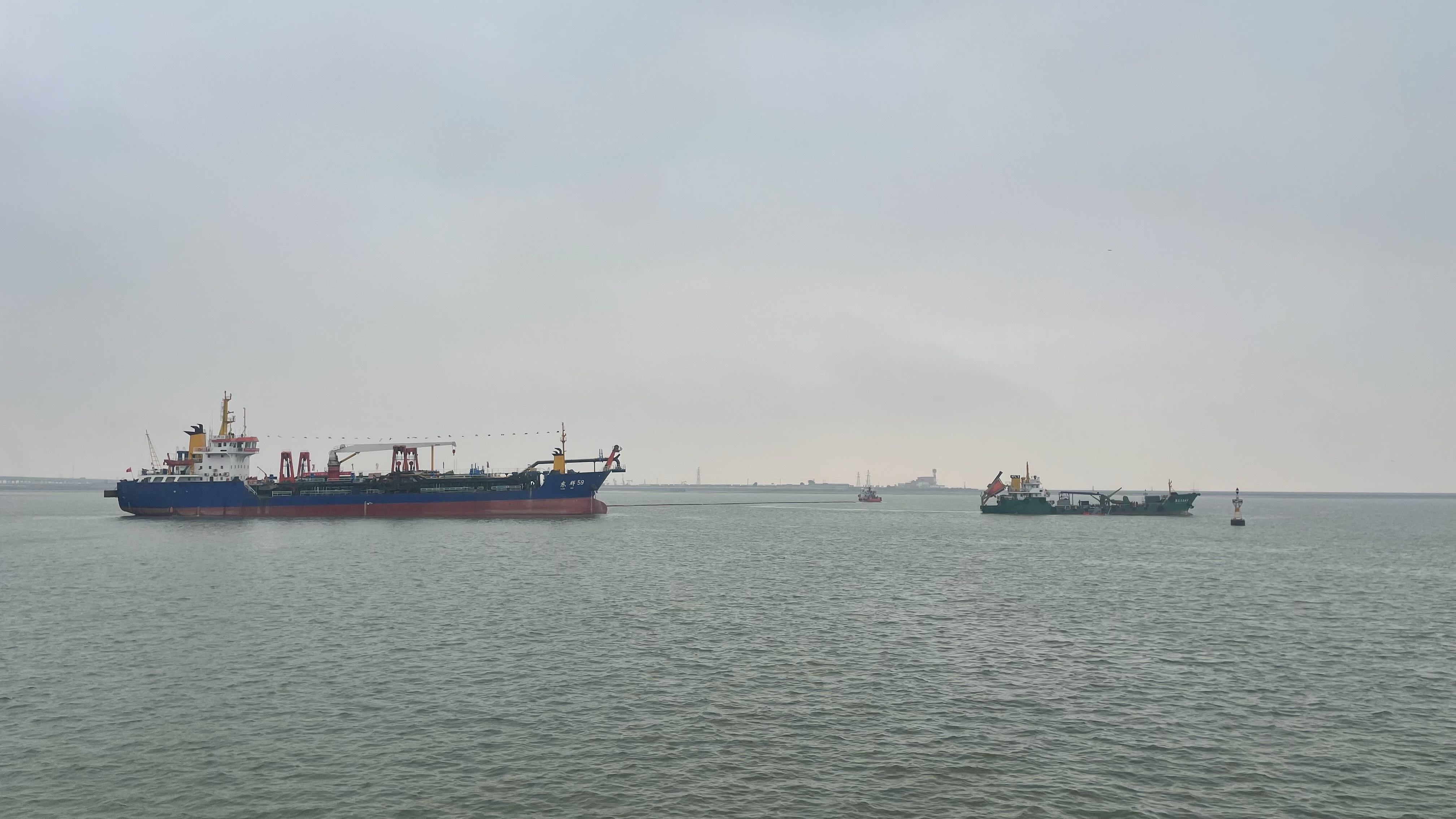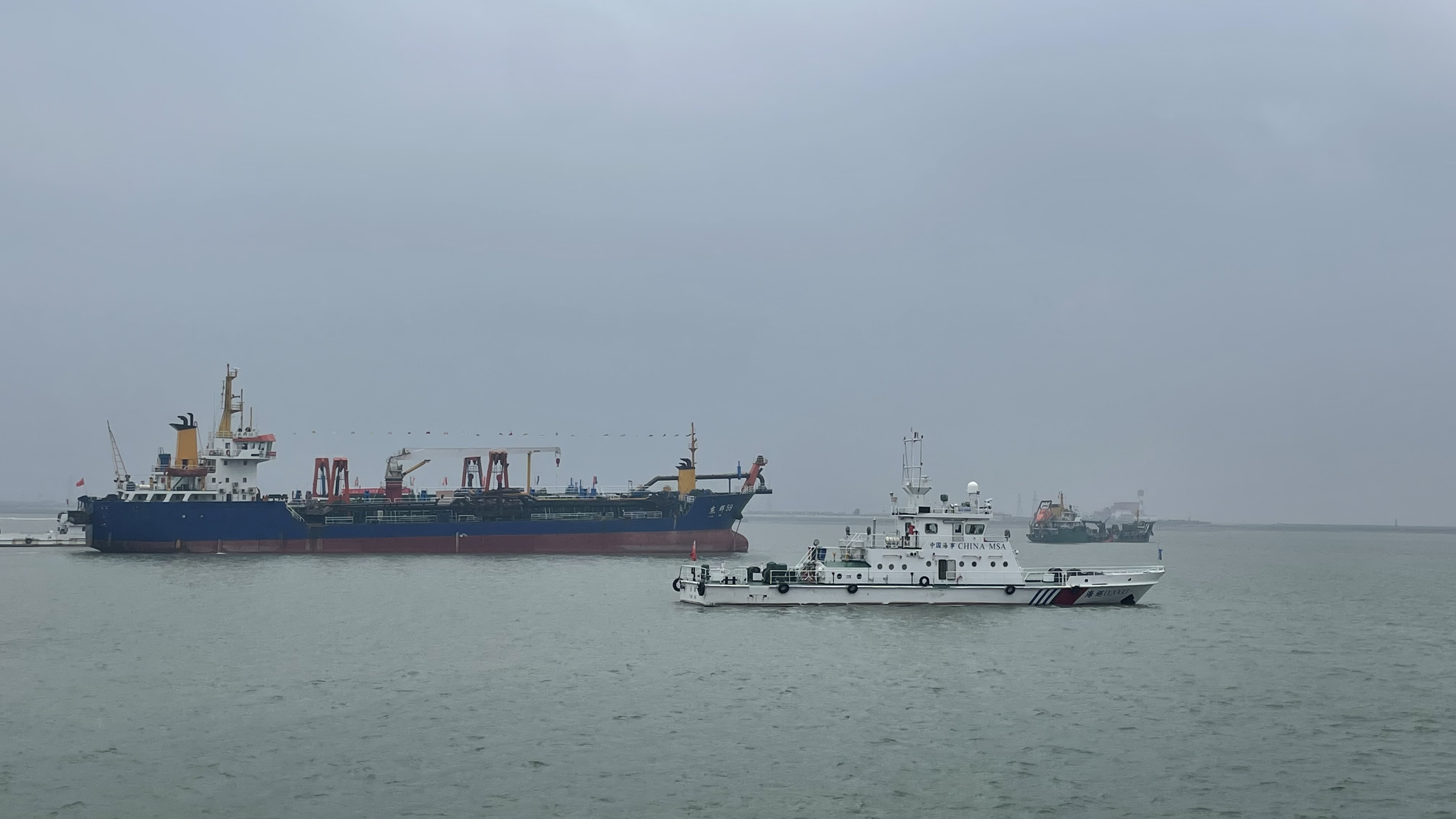 津滨网讯(记者 果琳 报道 吕洪迎 摄影)以第24个“全国安全生产月”为契机,6月27日上午,一场海上综合应急演练在天津港大港港区10万吨级航道提升工程现场举行。