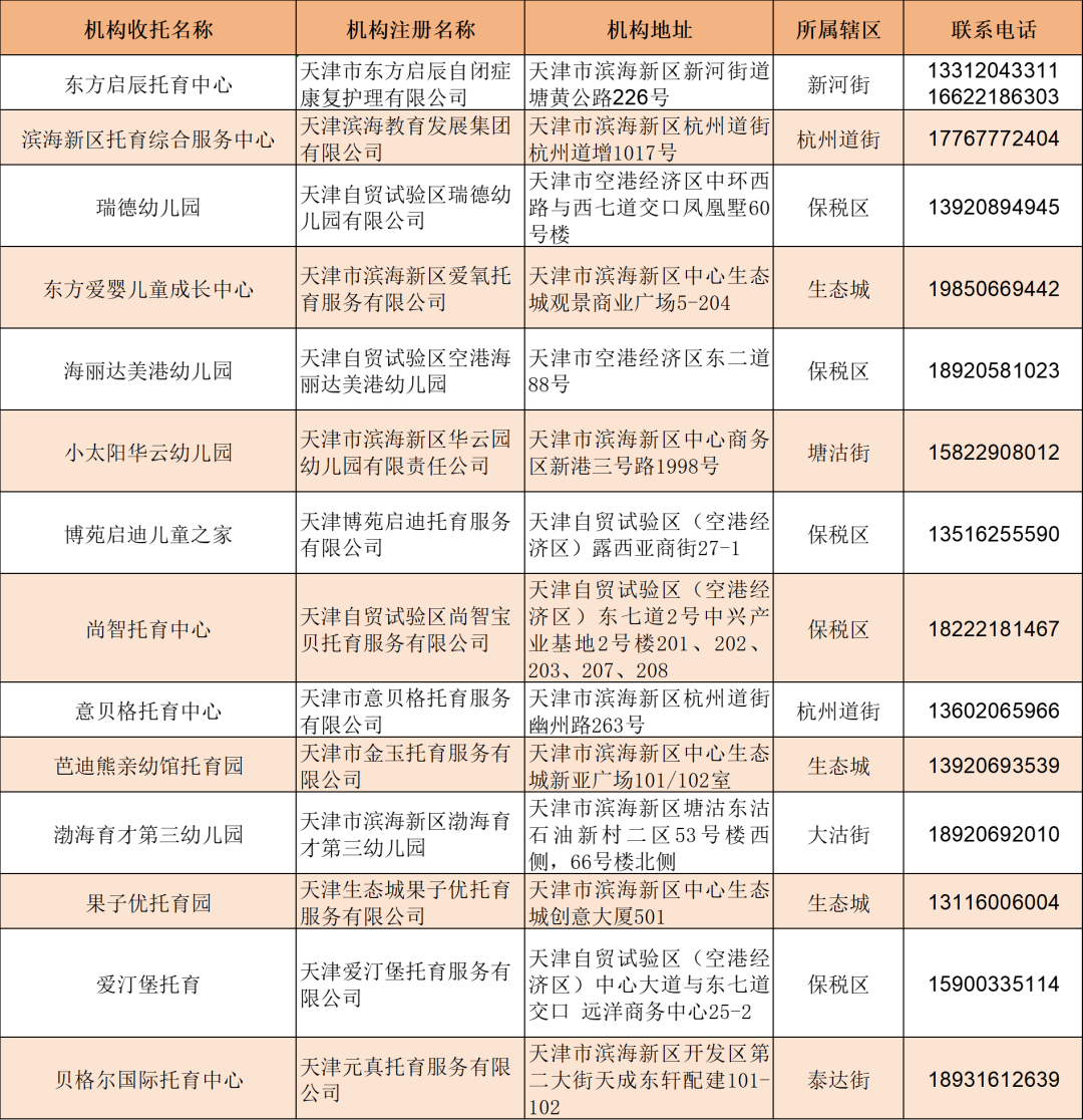 依法注册登记,并在滨海新区卫生健康委员会备案运营的托育机构。