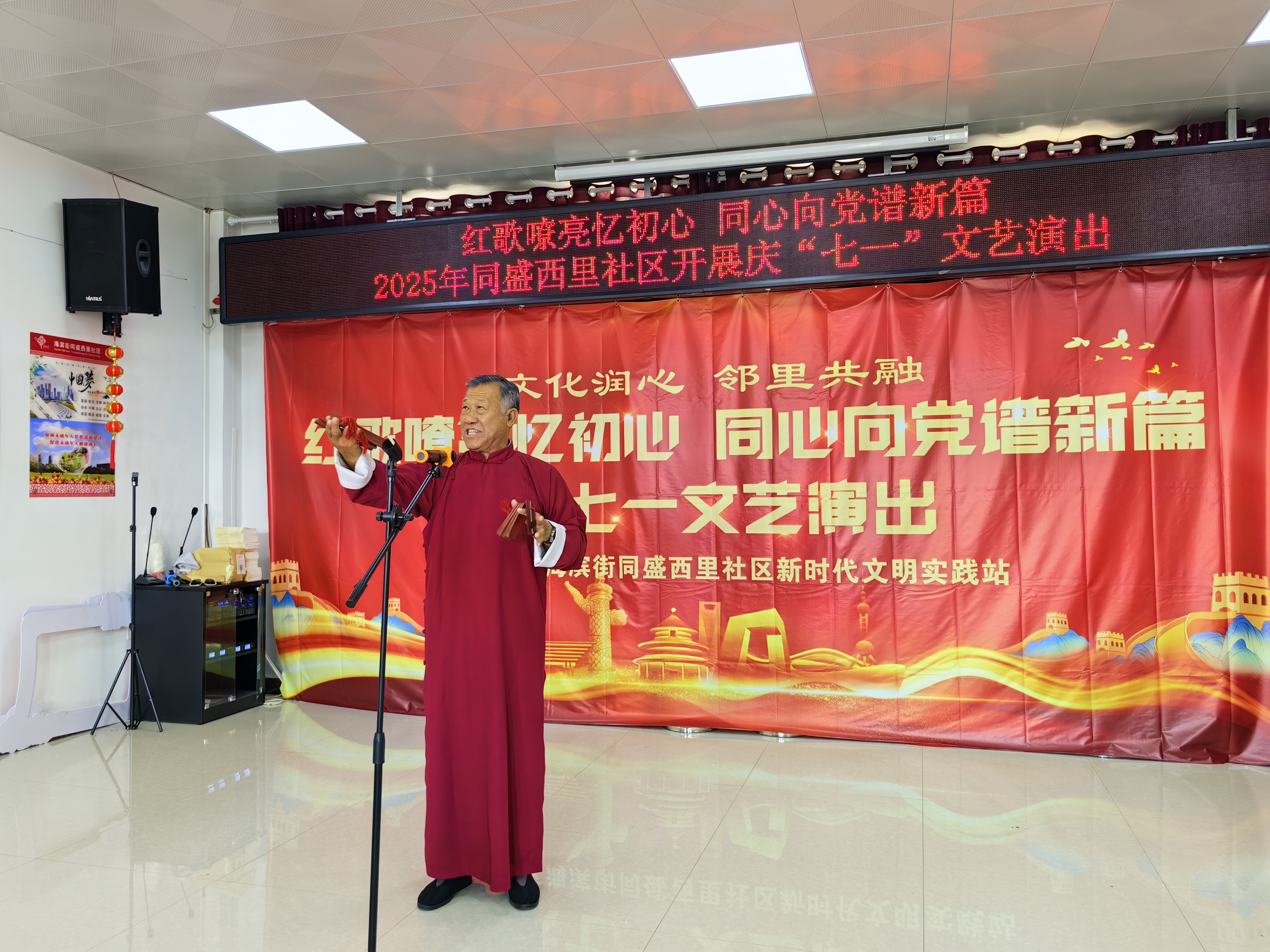 整场演出围绕 “庆七一、颂党恩” 主题,以歌舞、合唱、独奏、快板等形式,串联起党的奋斗历程与伟大成就。演出在全场齐唱《没有共产党就没有新中国》的激昂旋律中落下帷幕,居民们纷纷表示,通过参与活动,更深刻感受到党的恩情,也增强了社区凝聚力与归属感。未来,同盛西里社区将继续以文化活动为载体,传承红色基因,共建美好社区,让党的精神在基层熠熠生辉。