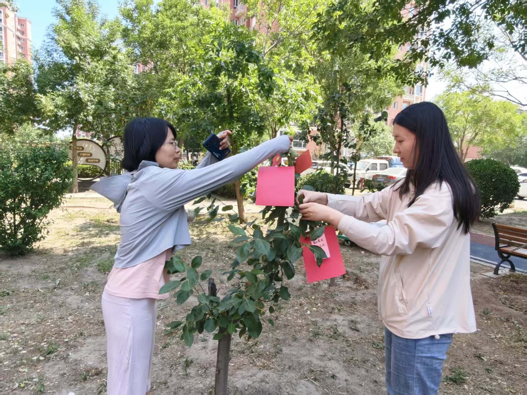 在郝书记的引导下,党员们一同来到“心愿树”前。翠绿的枝桠间,100张心愿卡正在轻轻摇曳。这些心愿都来自社区前期的入户走访:困难家庭的孩子说,“一直用表姐的旧书包,想要一个属于自己的新书包”,独居老人说,“年纪大了,就盼着有人陪我唠唠嗑”,小男孩看着自己破旧的足球小声说,“我想要一个新足球,我的足球还是在垃圾池里捡的呢”,残疾人大爷说,“出门不方便,还总得吃药,希望有人能帮我把药买回来”,低保户说,“我生活比较困难,我想要一桶油”……一张张心愿卡,承载着群众的期盼。党员们驻足细读,认真挑选着自己想要帮助实现的心愿。