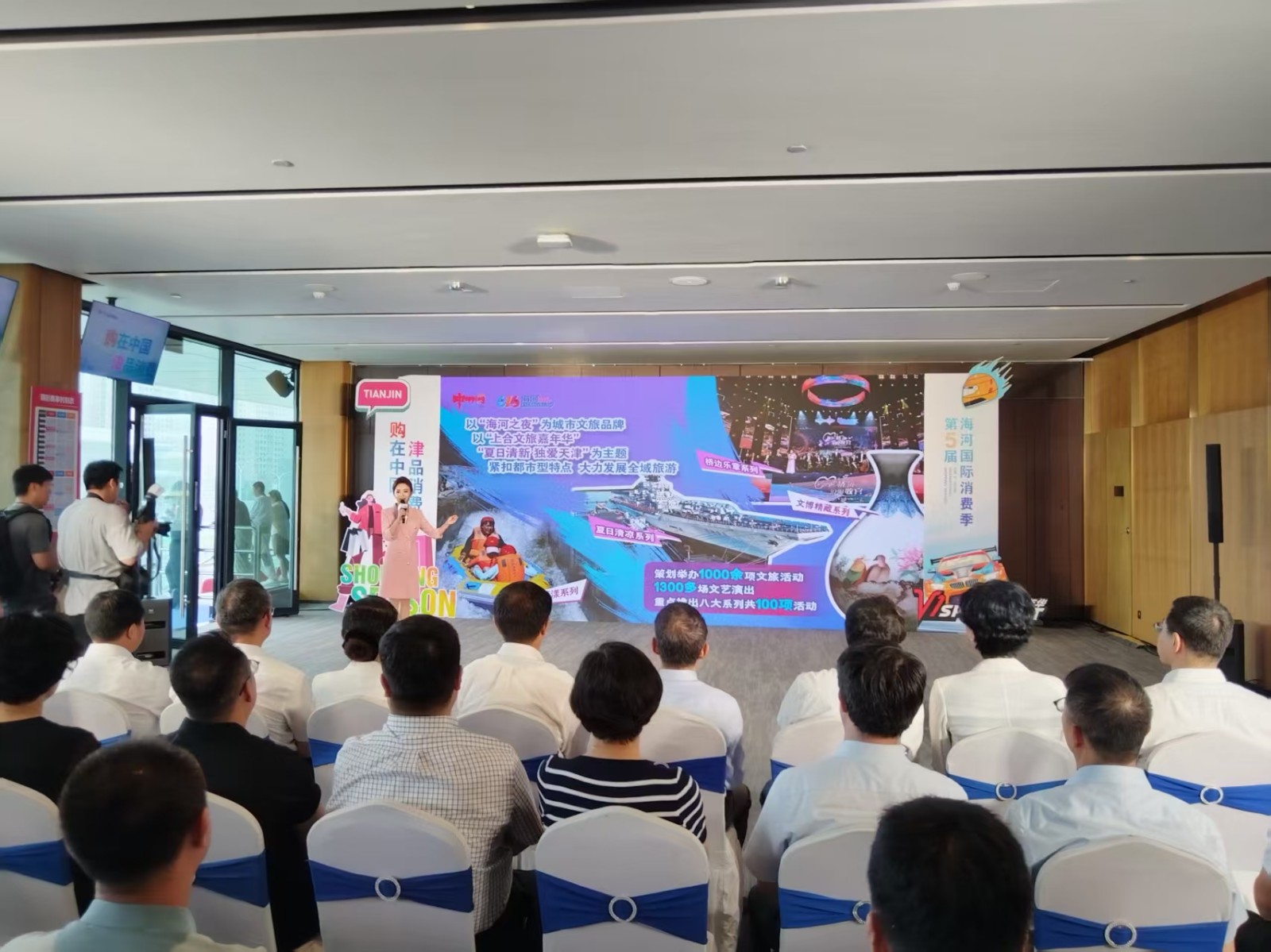 启动活动上,相关部门发布了消费季重点活动。市文旅部门以“海河之夜”为城市文旅品牌,围绕“上合文旅嘉年华”“夏日清新 独爱天津”主题,重点推出“水波荡漾系列”“夏日清凉系列”等八大系列文旅活动,丰富文旅消费产品供给,叫响“河海津韵”城市名片。市体育局重点打造“乐享津门•足球嘉年华”系列活动,依托津门虎主场赛事,带动周边住宿、餐饮等消费增长。通过举办全国柔道积分赛、棒球冠军赛等专业赛事以及哪吒文化体育嘉年华等群众文体活动,形成“专业+群众”双轮驱动,将体育与消费场景深度融合,推动“赛事流量向消费动能”转化。市人社局推出“暖心惠民畅行津城”社保卡专项活动,搭建多领域、多渠道的社保卡惠民消费场景,构建“一卡通”应用生态圈,提升社保卡在民生领域的知晓度与使用率。