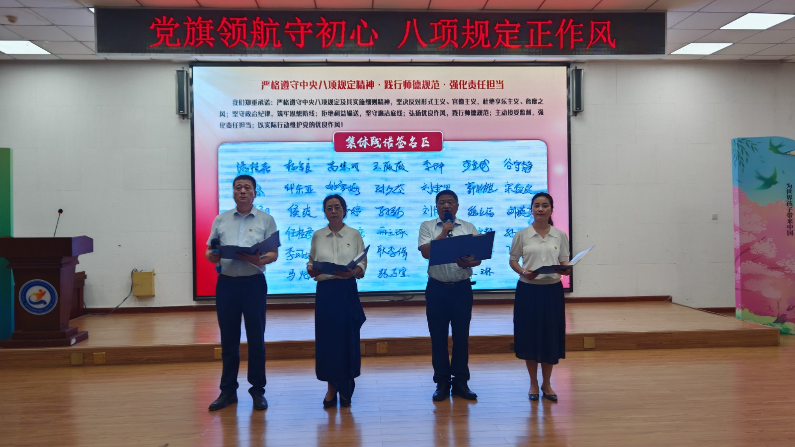 活动在合唱《不忘初心》中圆满落幕。全体党员表示,将以党旗为指引,以八项规定为标尺,把 “教好书、育好人” 刻进职业生命,让清正风气在校园落地生根。