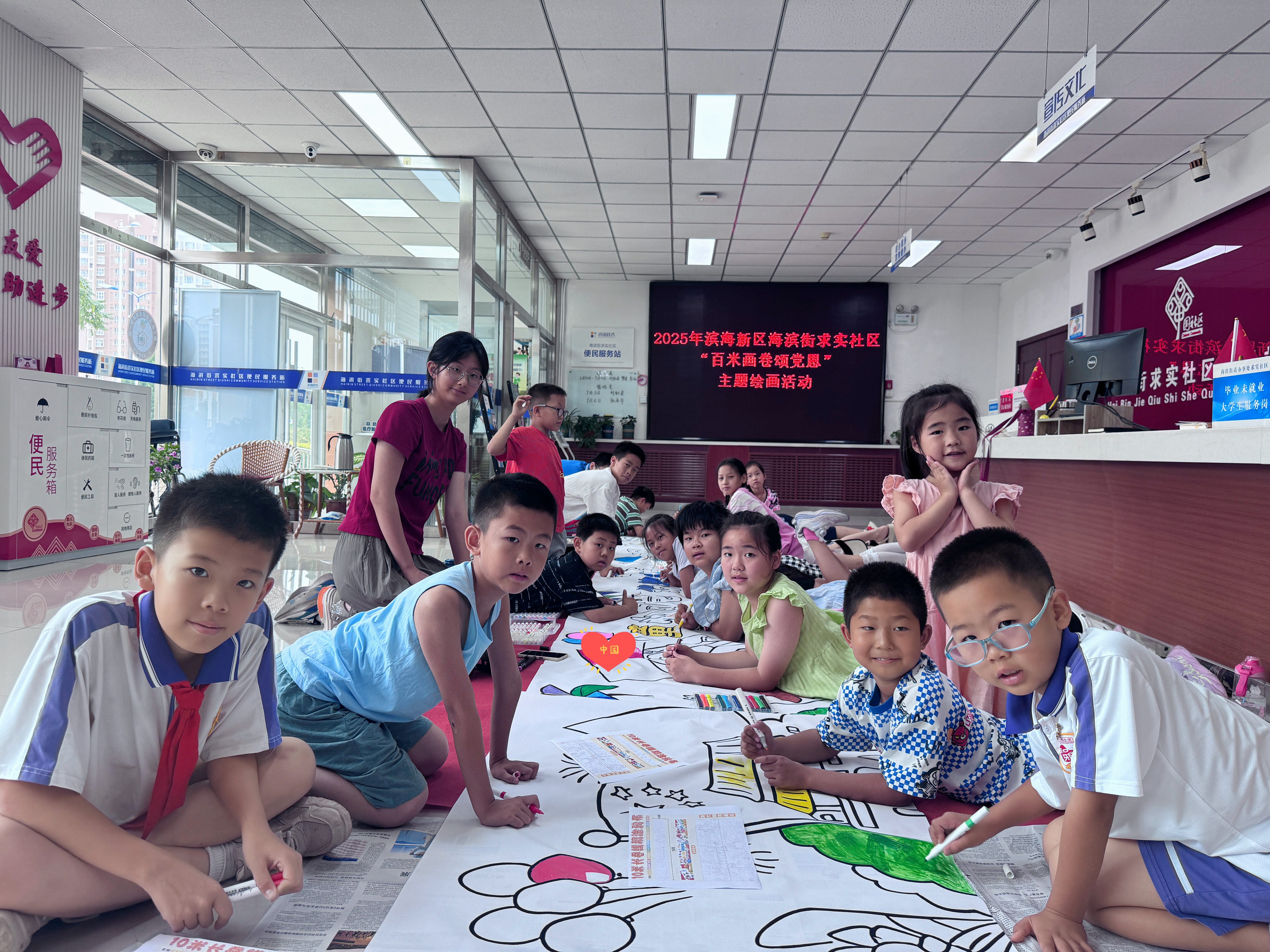 津滨网讯(记者 张爱萌 通讯员 孙书兰 摄影报道)为热烈庆祝中国共产党成立104周年,深化爱国主义教育,凝聚社区红色力量,6月30日,海滨街道求实社区组织开展“百米画卷颂党恩”主题绘画活动。来自社区的儿童和青少年用画笔和色彩,绘制了一幅幅展现祖国发展成就、讴歌人民幸福生活的画卷。
