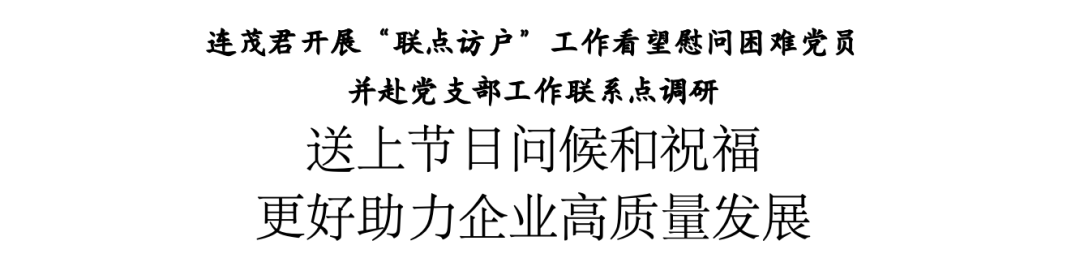 在困难党员段善铭家中,连茂君关切地询问老人的身体健康状况和家庭生活情况,认真听取他的意见建议。看到老人身体逐渐康复、精神状态良好,连茂君十分欣慰,感谢他为党的事业和新区发展作出的贡献,希望他保重身体、乐观生活,继续发挥党员模范带头作用,关心支持社区工作,积极反映社情民意,带动社区居民共同缔造美好家园。连茂君还嘱咐有关部门、街道要始终把老党员和困难党员的冷暖放在心上,进一步加大关心关爱力度,主动帮助解决实际困难,让他们真切感受到党和政府的关怀与温暖。