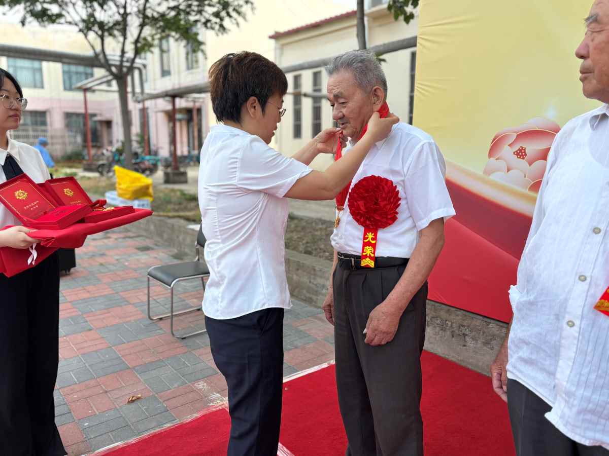 伴随着嘹亮的歌声,西运社区党委书记还为光荣在党50周年的优秀党员颁发了纪念章。