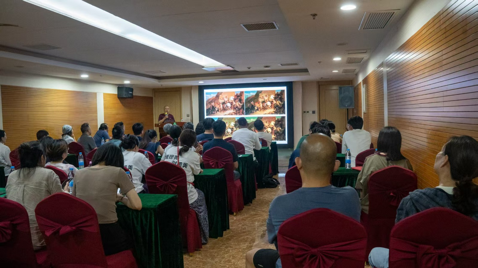 29日下午,采风团参观了国家海洋博物馆、北塘渔港码头,深入了解海洋文明与生态保护成就。当晚的“美育大讲堂”上,天津市美术家协会相关负责人以“创作从草图开始”展开交流,结合自身多年艺术实践,深入剖析了草图阶段对艺术创作的核心价值。