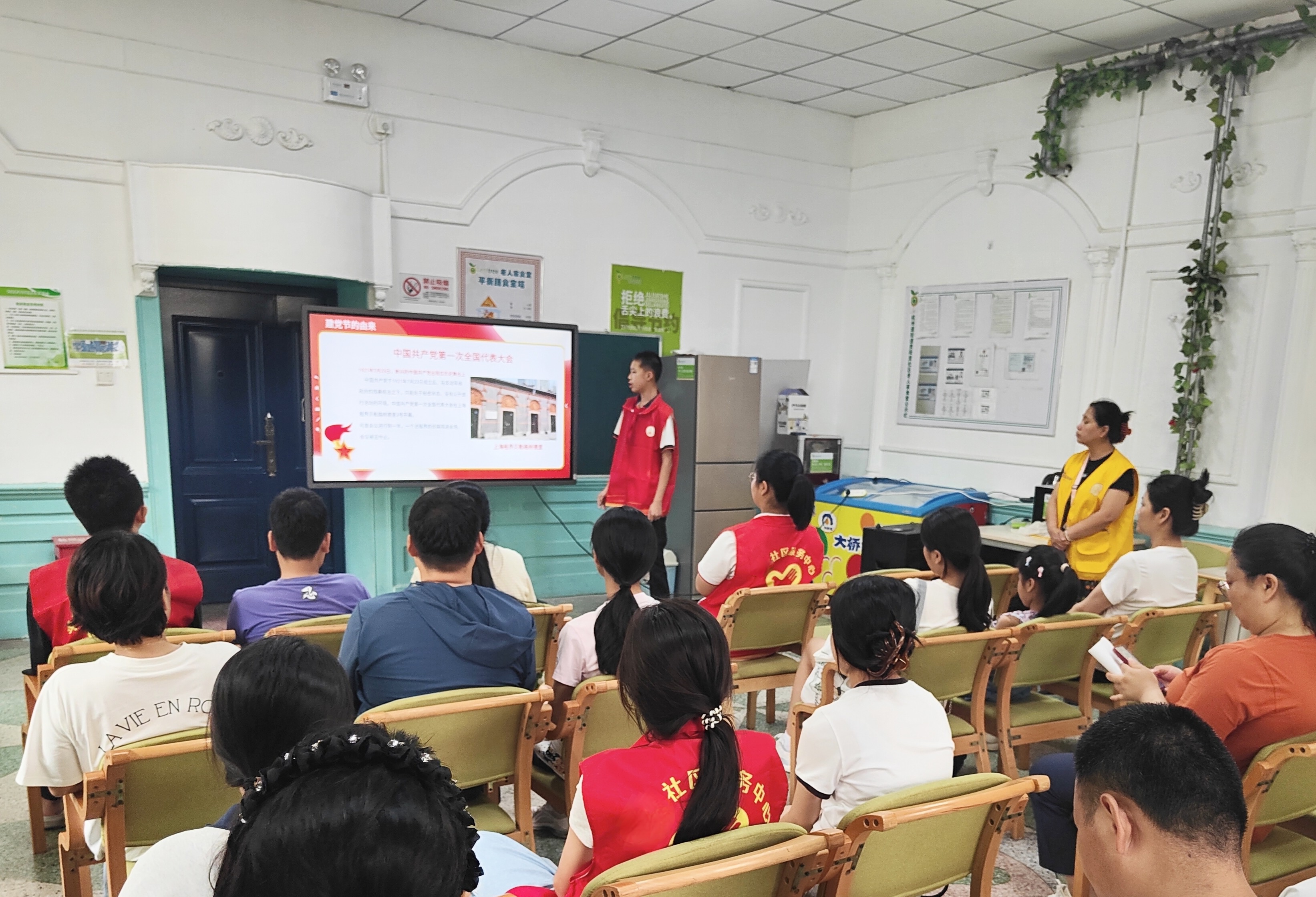 活动现场,来自塘沽六中的许梓浩同学作为科技志愿者,为现场的青少年们带来了一场别开生面的党史科普讲座。他用生动有趣的语言,讲述了中国共产党成立的历史背景和重要意义,让青少年们对党的光辉历程有了更深刻的认识。同时,许梓浩还详细介绍了党旗党徽的设计含义、历史沿革以及在不同场合的规范使用,使青少年们更加了解党旗党徽所承载的神圣使命。青少年们积极参与党史知识问答互动,现场气氛热烈。随后,青少年们一起观看了建党短片,通过珍贵的历史影像资料,回顾了中国共产党诞生的艰辛历程,感受革命先辈们为实现理想信念不惜牺牲一切的伟大精神。