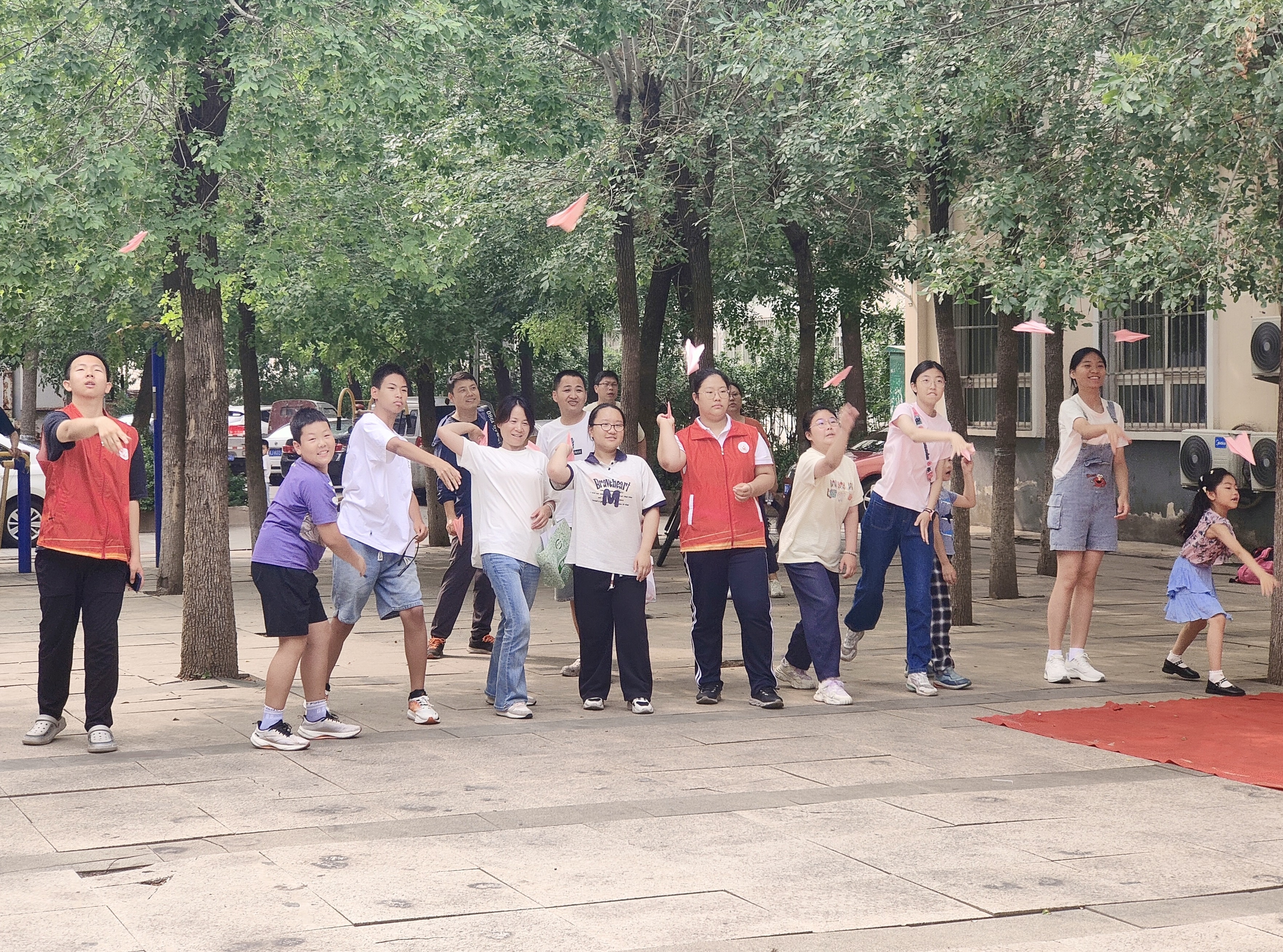 在科技体验环节,普汇青年科技志愿服务队与青少年们一起制作“火箭号”纸飞机。青少年们充分发挥自己的动手能力,折出了属于自己的纸飞机,一架架承载着梦想与希望的“火箭号”纸飞机在社区的小广场上腾空而起,飞向蓝天,象征着青少年们在党的光辉照耀下,勇敢追逐自己的梦想。