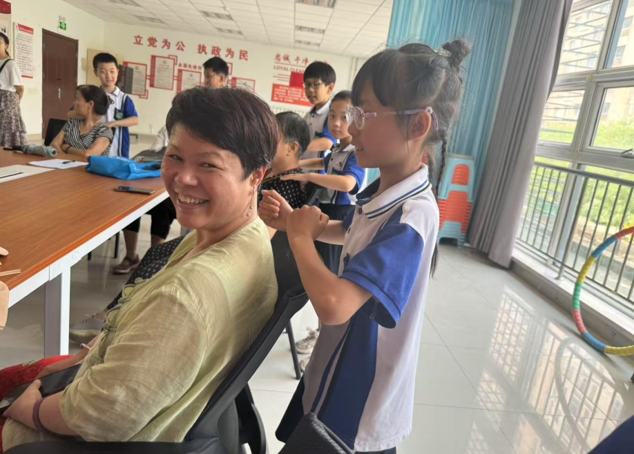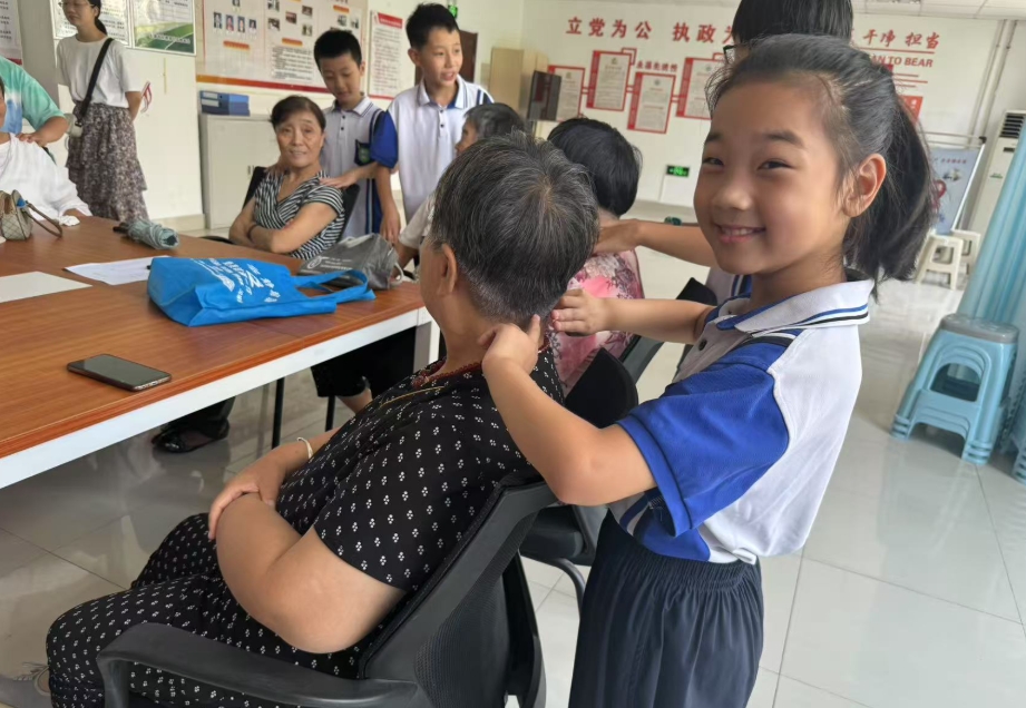 在专业人员的指导下,孩子们摇身一变成为“小小志愿者”,为社区老人提供按摩和血压测量服务。他们虽手法略显生疏,但那份认真劲儿,还有那一句句贴心的话语、一个个温暖的举动,都深深打动了老人们,让老人们切实感受到了社区的关怀与温暖。