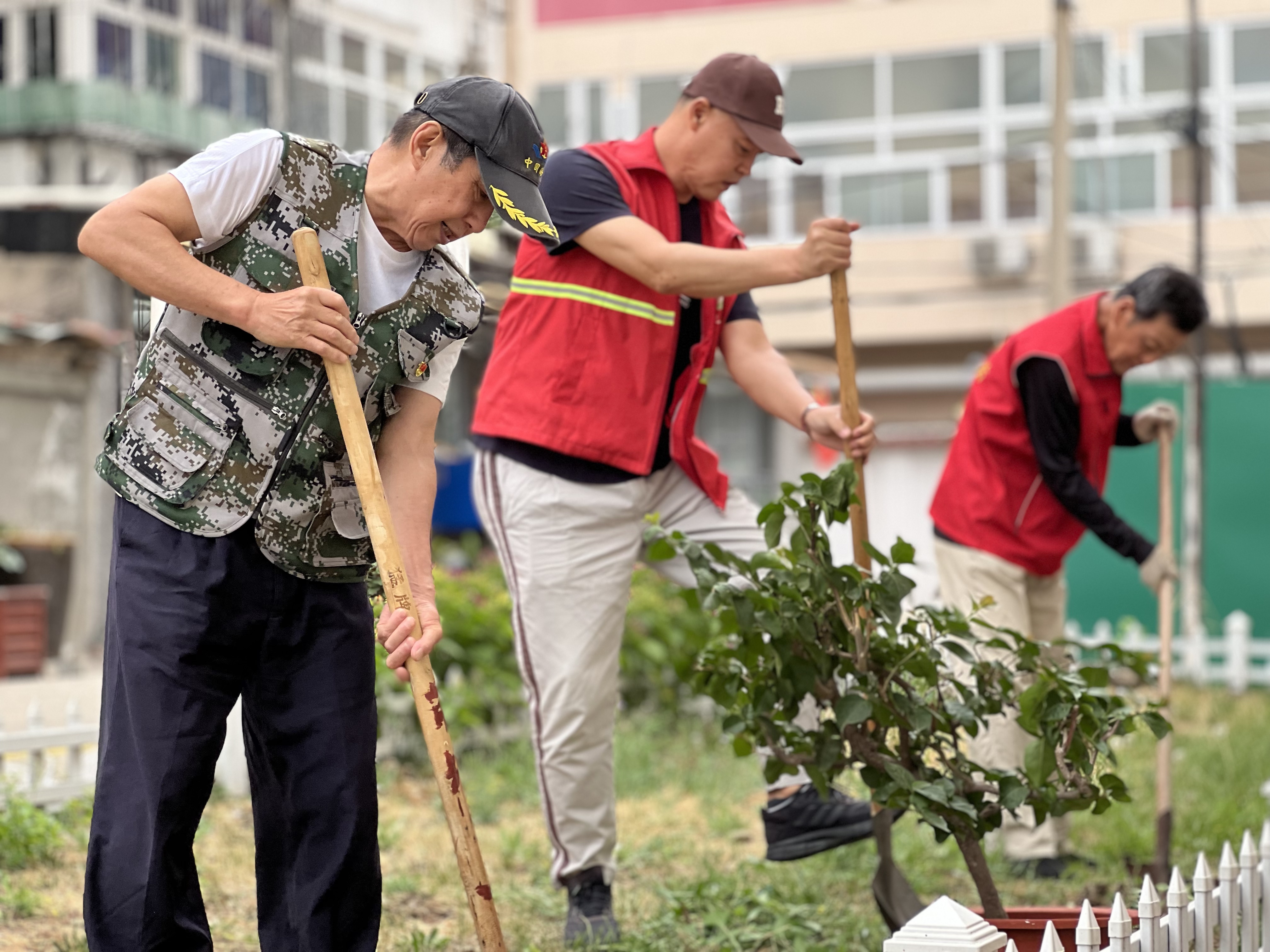 “镢头开荒、纺车织布,咱们八路军就是靠这双手把烂泥湾变成‘陕北好江南’!”退役军人服务站老兵宣讲员焦志民在花圃旁动情讲述南泥湾故事。老干部党支部王老懂得种植技巧,将艰苦奋斗的革命精神融入“上合绿”栽培实践。6岁的小茉莉兴奋地说:“我要像八路军叔叔一样,把这片花圃变成‘社区小江南’!”