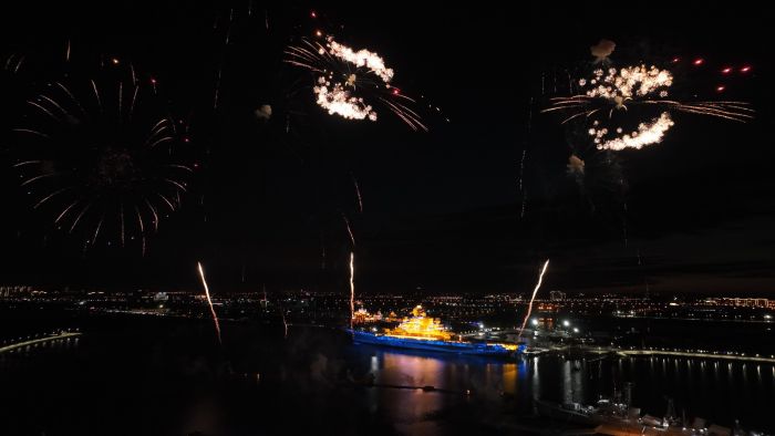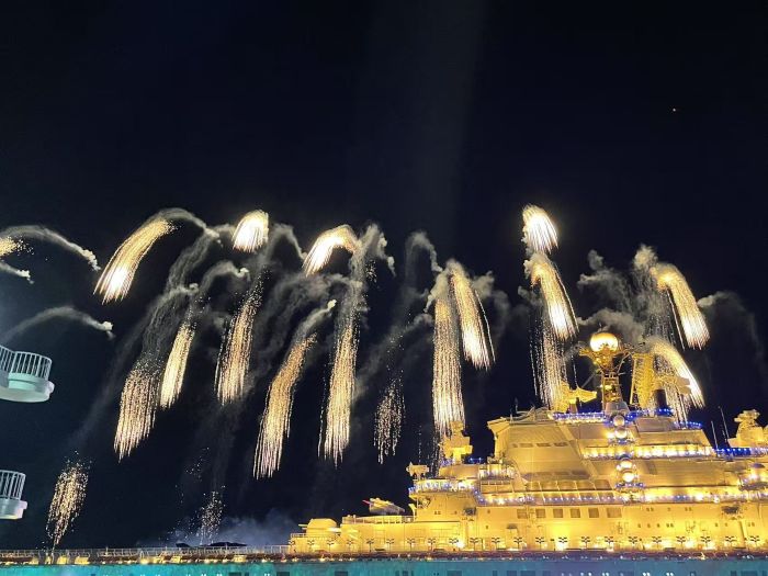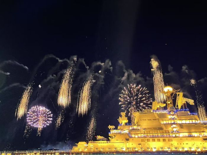 津滨网讯(记者 张倩 秦小明 摄影报道)7月5、6日两天,泰达航母主题公园“夜上津门·焰遇航母”大型沉浸式夏日音乐焰火秀正式回归,进一步丰富游客夏日游玩体验。即日起至8月30日的每周六日,泰达航母主题公园都将开启“白+黑”模式,在渤海湾畔掀起昼夜狂欢热潮。