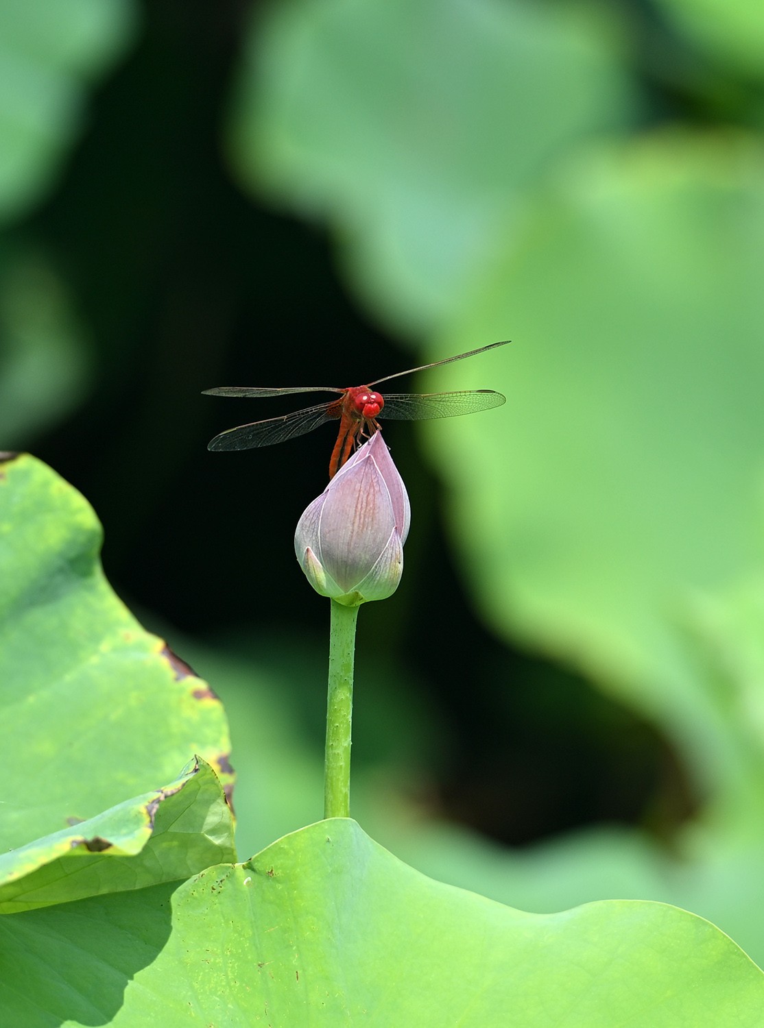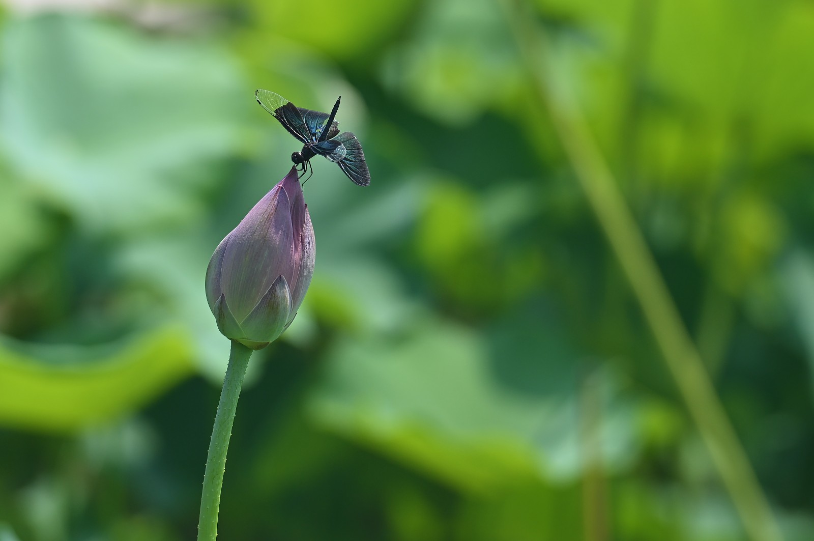 在这片荷韵满满的景致中,一群特殊的“舞者”更添灵动——它们便是有着“蝶形蜻蜓”美誉的黑丽翅蜻。只见它们身着油亮的黑色“外衣”,翅膀展开时宛如蝴蝶翅膀般宽大优美,时而轻盈地在空中悬停,仿佛定格在夏日画卷中;时而相互追逐嬉戏,划出一道道灵动的弧线;更多时候,则静静伫立在荷花尖或莲叶边缘,与娇艳的荷花相映成趣,构成一幅和谐的生态图景。偶有红蜻蜓穿梭其间,与黑丽翅蜻共舞,为这片湿地更添几分活力。
