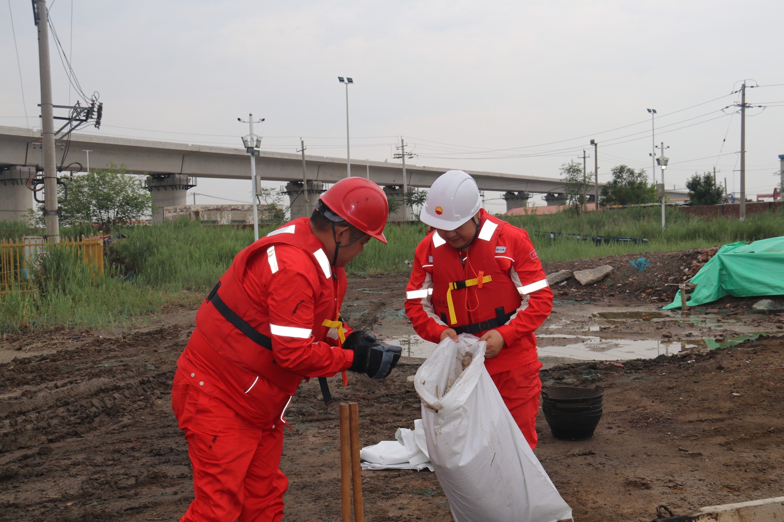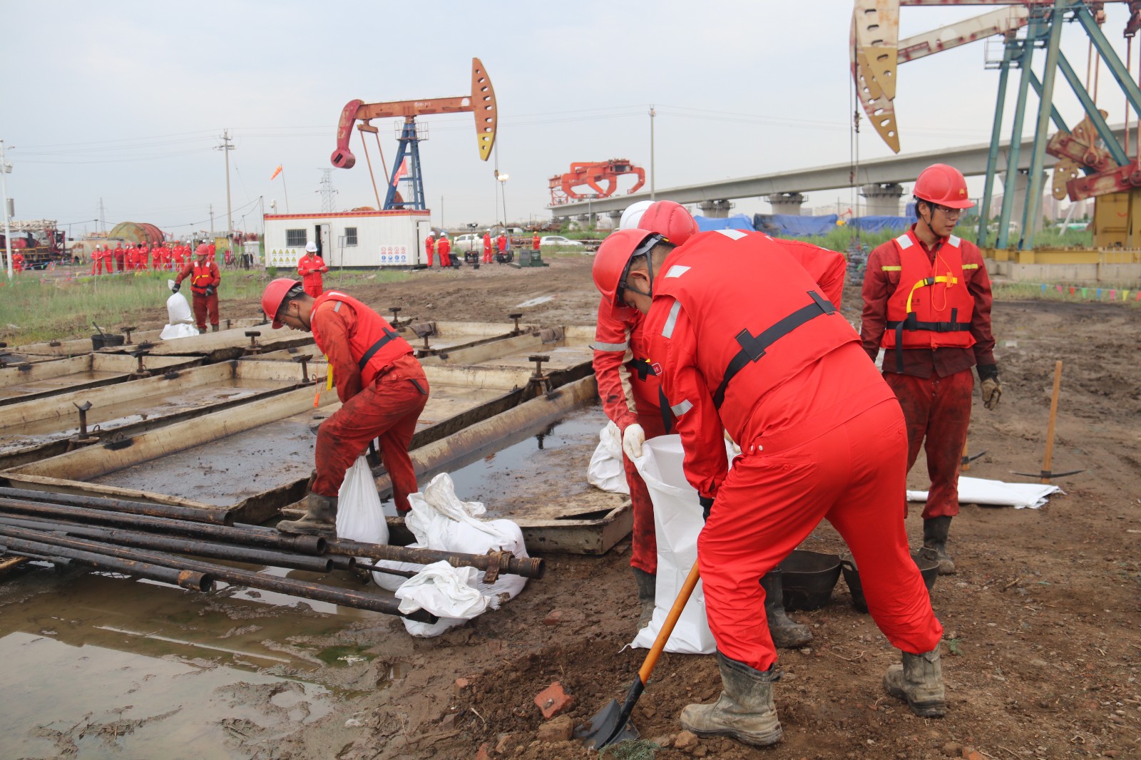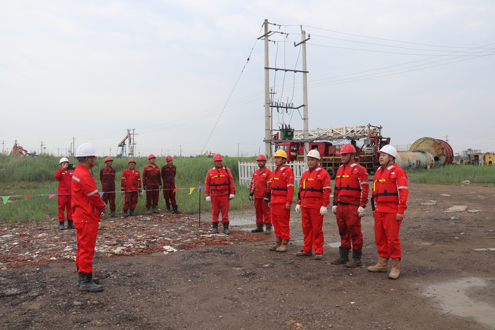 津滨网讯(记者 窦永滨 哈喆 通讯员 马慧娟 摄影报道)日前,大港油田采油五厂修井作业部在西47-3-1井开展防汛抗洪突发事件应急演练。演练模拟作业部接到上级通报,因上游持续降雨引发洪涝,洪峰将于12点抵达泄洪区域,需立即对该区域内施工队伍、设备及人员采取紧急处置措施。经核查,作业部407队正于泄洪区的西47-3-1井施工。防汛应急小组及各组人员迅速集结,应急领导小组组长宣布即刻启动自然灾害(防汛)处置程序。
