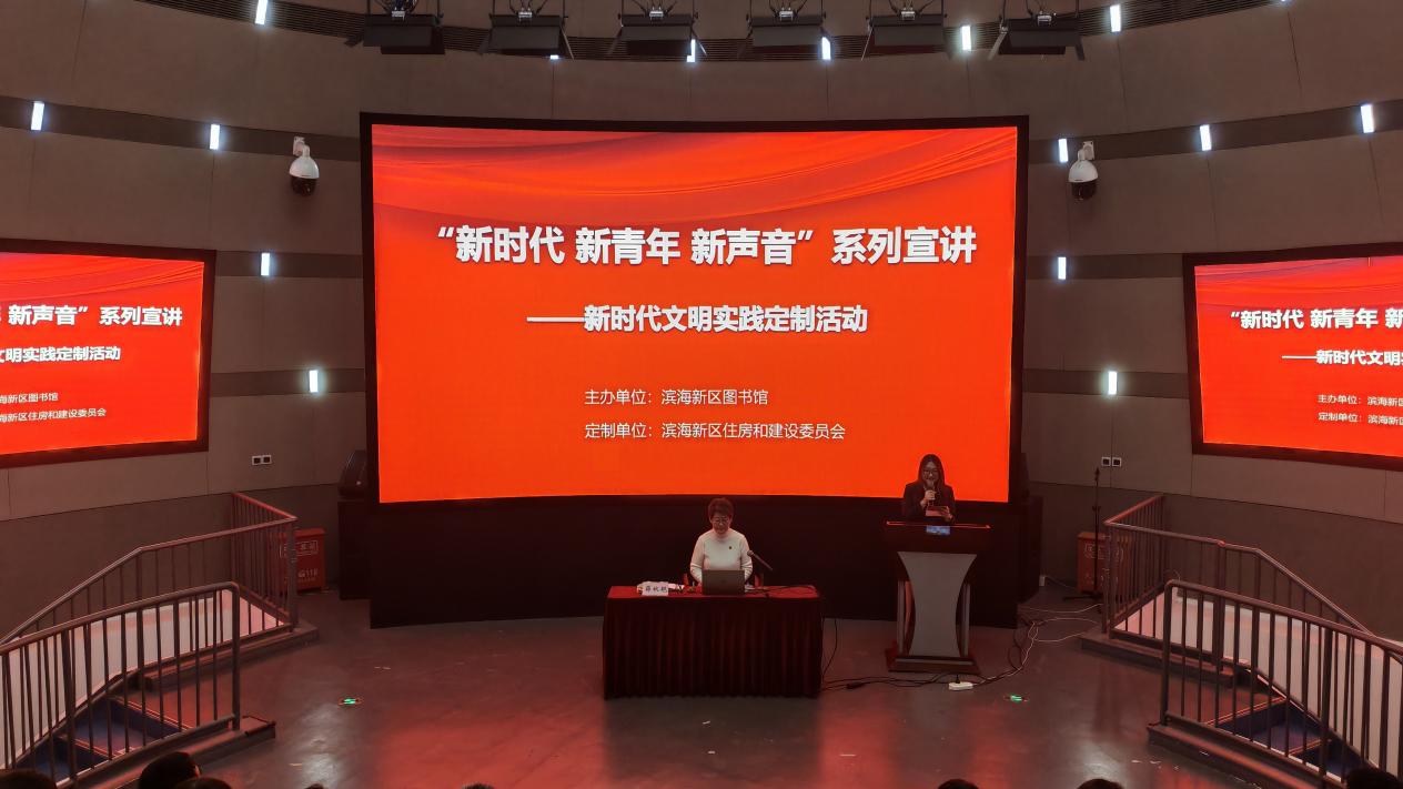理论是行动的先导,宣讲是传播的桥梁。滨海新区图书馆积极联合南开大学博士生宣讲团、天津科技大学马克思主义学院讲师团、滨海新区区委党校讲师团队等优质资源,组建了“新时代新青年新声音”理论宣讲团。该宣讲团以“专家走进来、理论送出去、学习云平台”的多元化方式,推动党的创新理论在机关单位落地生根、开花结果。