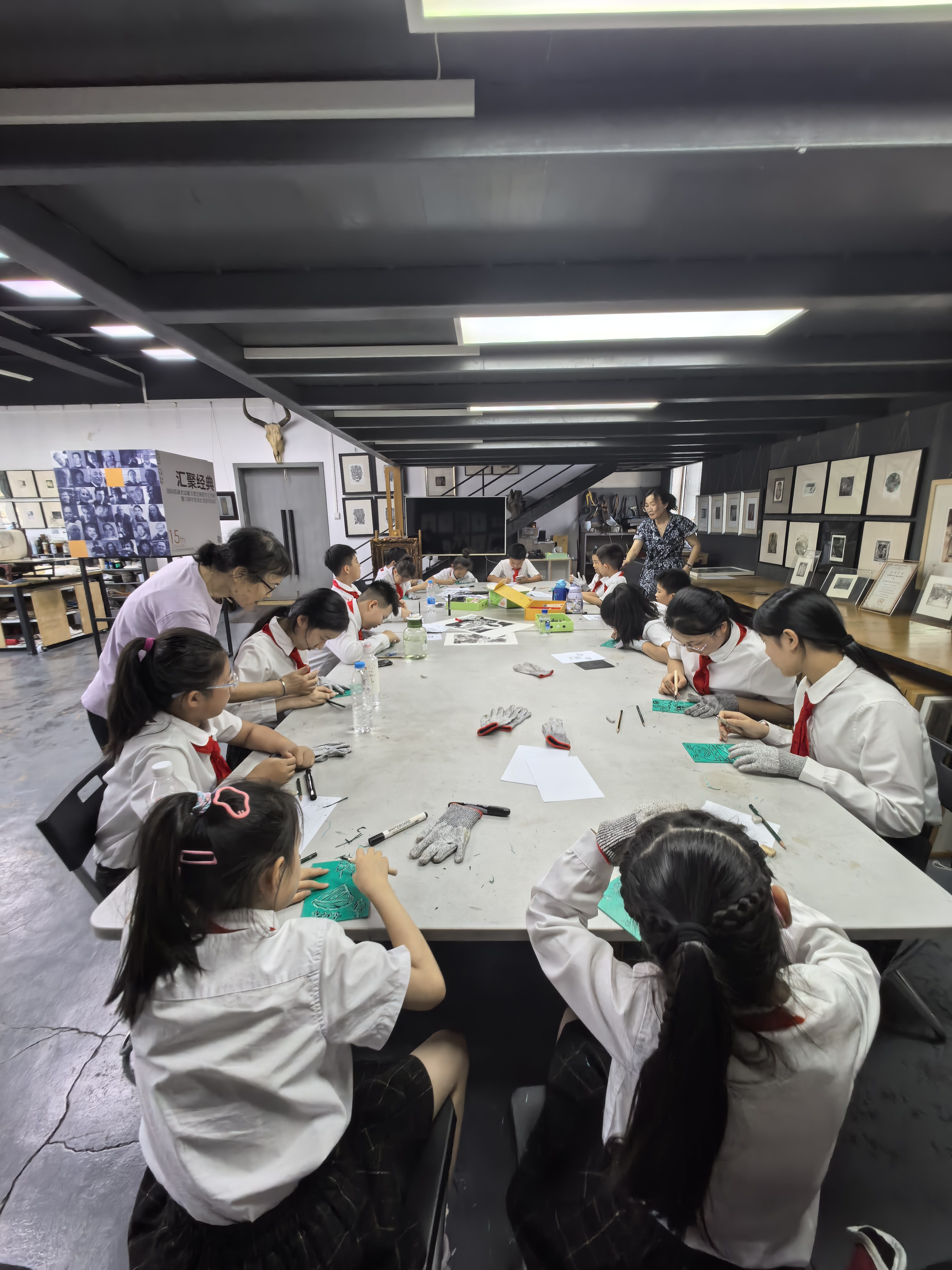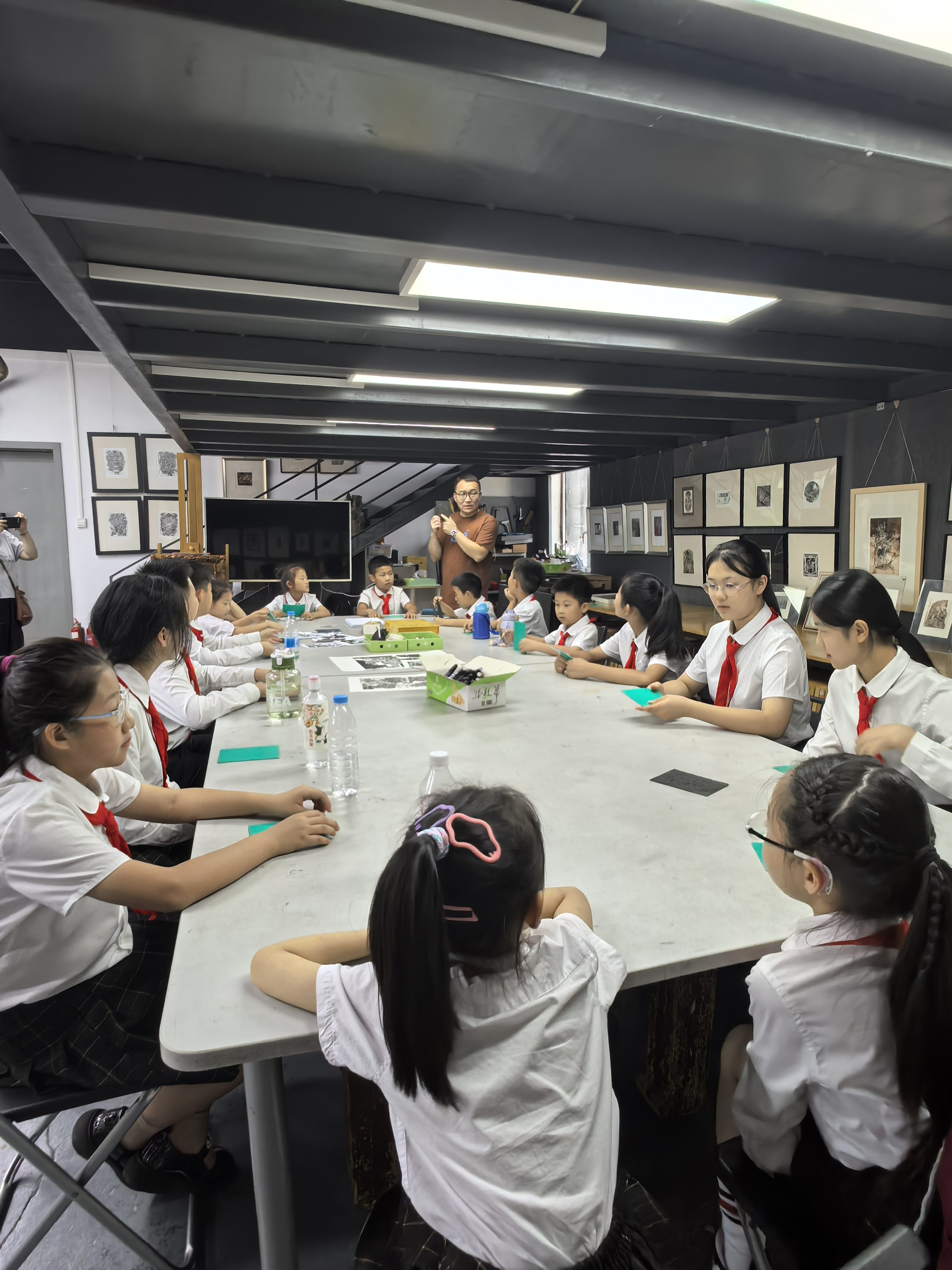 实践体验环节中,小营员在专业老师指导下,亲手参与简易藏书票的制作。通过揉纸、拓印等步骤,亲身体验文化创作的乐趣,加深对传统工艺的理解。现场,写作营的老师还引导孩子们将参观与实践中的所见所感融入文字,在提升国学素养与写作水平的同时,增强对家乡文化的认同感和自豪感。