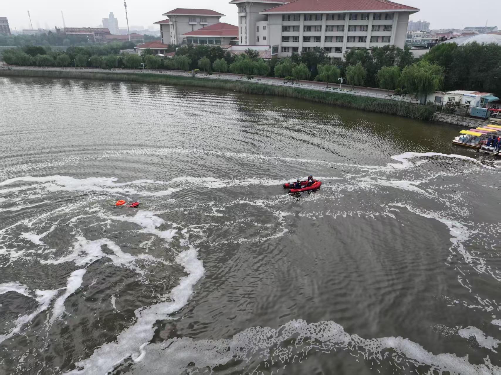 津滨网讯(记者 李婷婷 报道 刘汯林 摄影)日前,为全面提升应对突发洪涝灾害的应急反应和处置能力,大港街道组织开展了一场新质救援能力防汛应急演练。此次演练以“科技赋能应急救援”为核心,集中展示了救援橡皮舟、遥控救生圈、救生抛投器、救援无人机等现代化装备的实战应用,通过模拟真实灾情检验应急体系,为守护辖区群众生命财产安全筑牢坚实屏障。