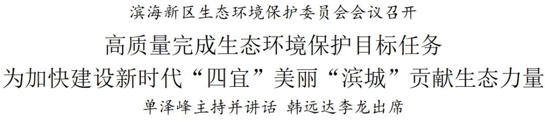 会议审议《天津市滨海新区生态环境保护委员会工作规则》《天津市滨海新区生态环境保护委员会办公室工作细则》,并通报了滨海新区环保督察整改进度及环境风险点。