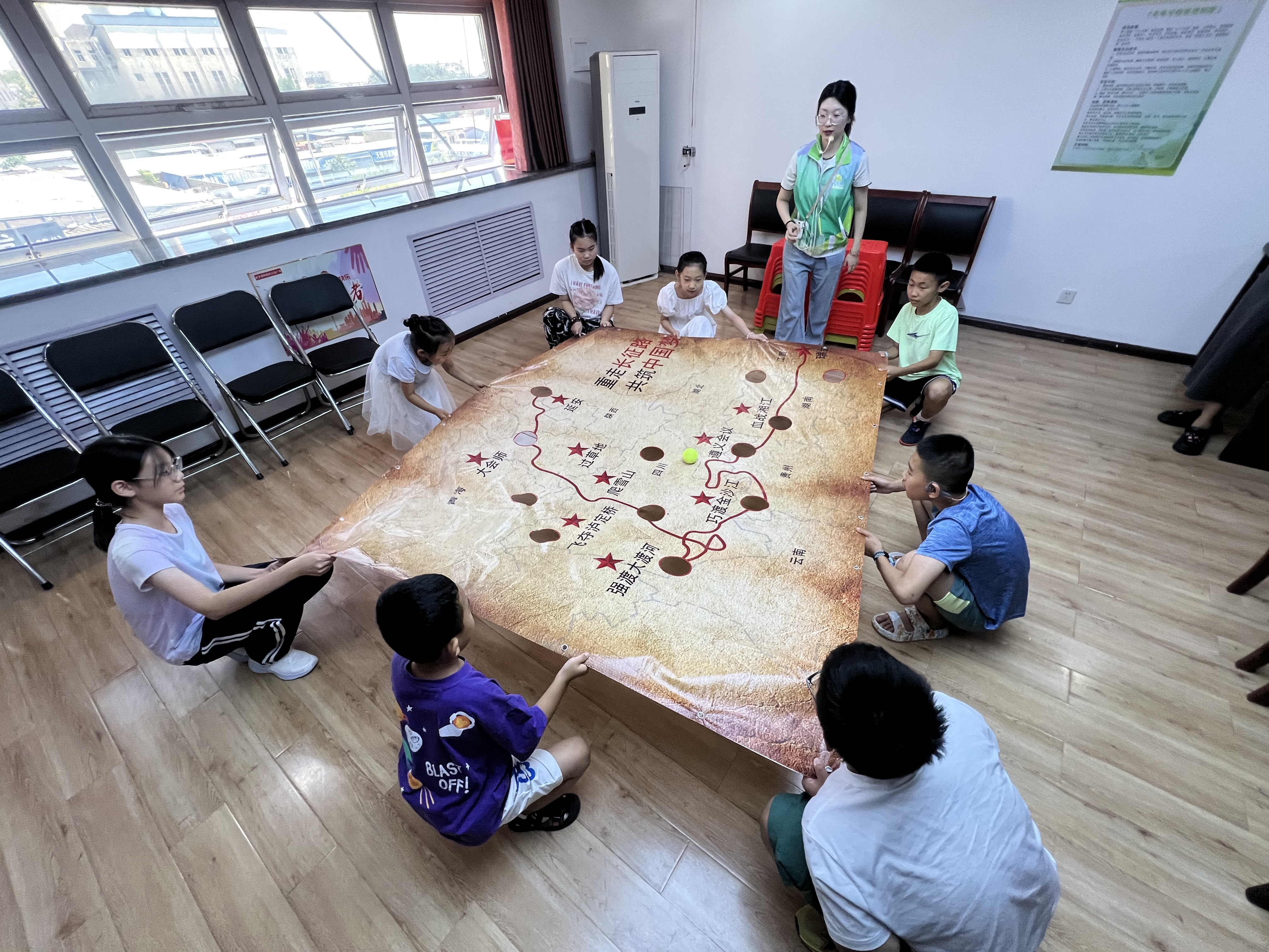津滨网讯(记者 韩春霞 通讯员 魏冉 摄影报道)为加强对新就业群体家庭的关爱服务,近日,新北街道晓镇家园社区特别为新就业群体子女举办了“童心向党 爱我中华”重走长征路主题夏令营活动。本次活动通过创新教育形式,让20余名新就业群体子女在沉浸式体验中学习长征历史,感悟红色精神。