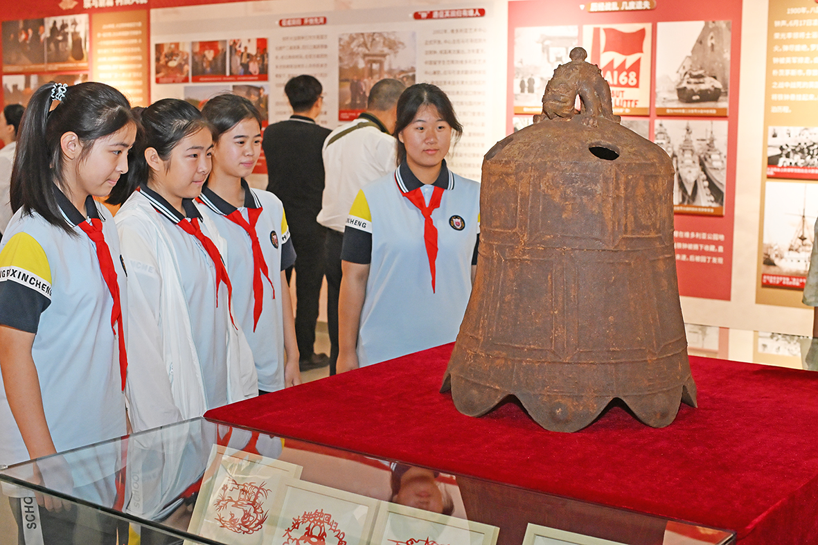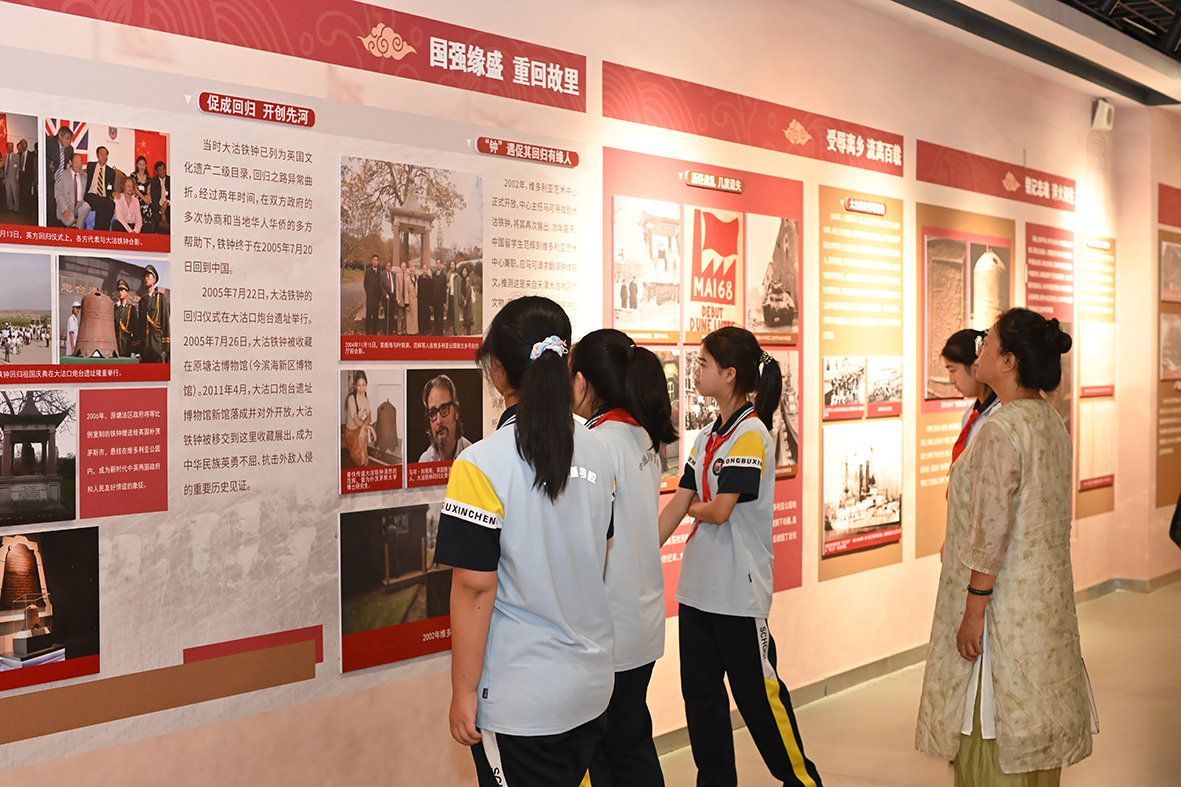 作为活动核心亮点,《薪火相传 文脉永续——大沽铁钟回归20周年暨中国流失文物回归主题展》同步揭幕。展览以铁钟回归为切口,串联起中国流失文物回归的典型历程,通过丰富图文、实物资料及场景复原,生动呈现“国宝回家”背后的守护与坚守。值得关注的是,展览特别辟出专区,展出中部新城学校、渤油二小师生以“大沽铁钟回归”为主题的书画、剪纸作品。稚嫩笔触下的历史记忆,正是滨海新区“文物保护从娃娃抓起”的鲜活实践。该展览将持续在大沽口炮台遗址博物馆展出,为社会公众提供沉浸式文化体验。