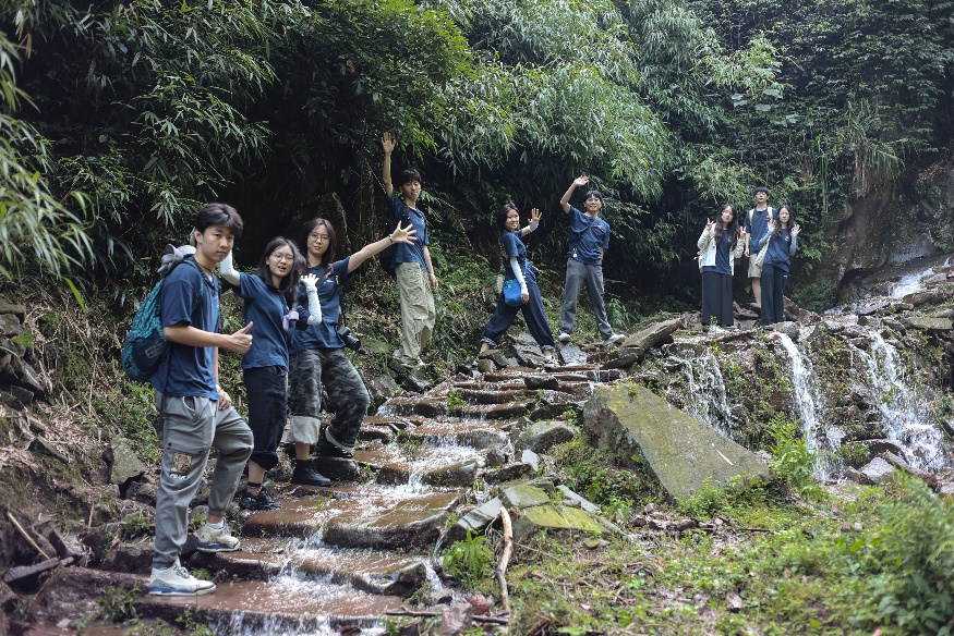 出发前的三场大雨,让本就难行的山路更添挑战。乱石铺就的梯步高低错落,雨后的泥巴路软滑难踩,部分路段被溪水漫过,队员们挽起裤脚蹚水而过时,才真正读懂了“红军不怕远征难”的分量。湿滑的石阶覆着苔藓,每一步都得攥紧身旁的草木;狭窄的岩壁间,前队伸手拉后队,后队托举着同伴的背包——汗水浸透衣衫时递来的半瓶水、蚊虫叮咬后相视而笑的默契,都在复刻着八十多年前红军战士相互扶持的温暖。