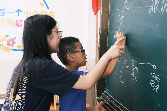 黑板上,队员们和孩子们一起画长征路线图,当笔尖落在“珙县王家镇”时,有人小声说:“原来红军离我们这么近!”在讲“王场济贫”的故事时,孩子们瞪大眼睛听着老师讲述红军打开盐号的场景故事,仿佛看到了当年乡亲们接过盐巴时含泪的笑脸。