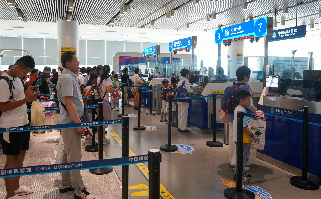 针对暑期出游高峰,东疆边检站加派警力,实施“潮汐式通道”查验动态管理,高峰期提前增开通道,最大限度缩短旅客候检时长;在快捷通道旁加开人工通道,将未成年儿童和指纹模糊的老人及时引导分流,最大限度提高通关效率;开设“绿色通道”为老弱病残孕等出行不便人员提供快速通关服务;设立“紧急求助窗口”,服务处理旅客证件遗失、意外受伤等突发情况,随时为旅客提供帮助。另外,该站自主研发的自动行进监护巡检机器人升级证件办理系统,可显著提高登离轮手续办理效率。