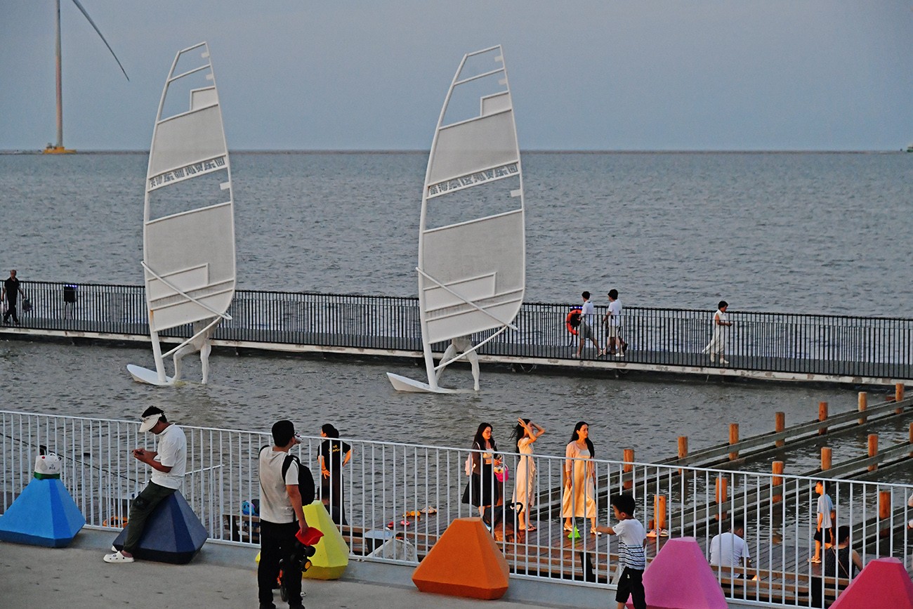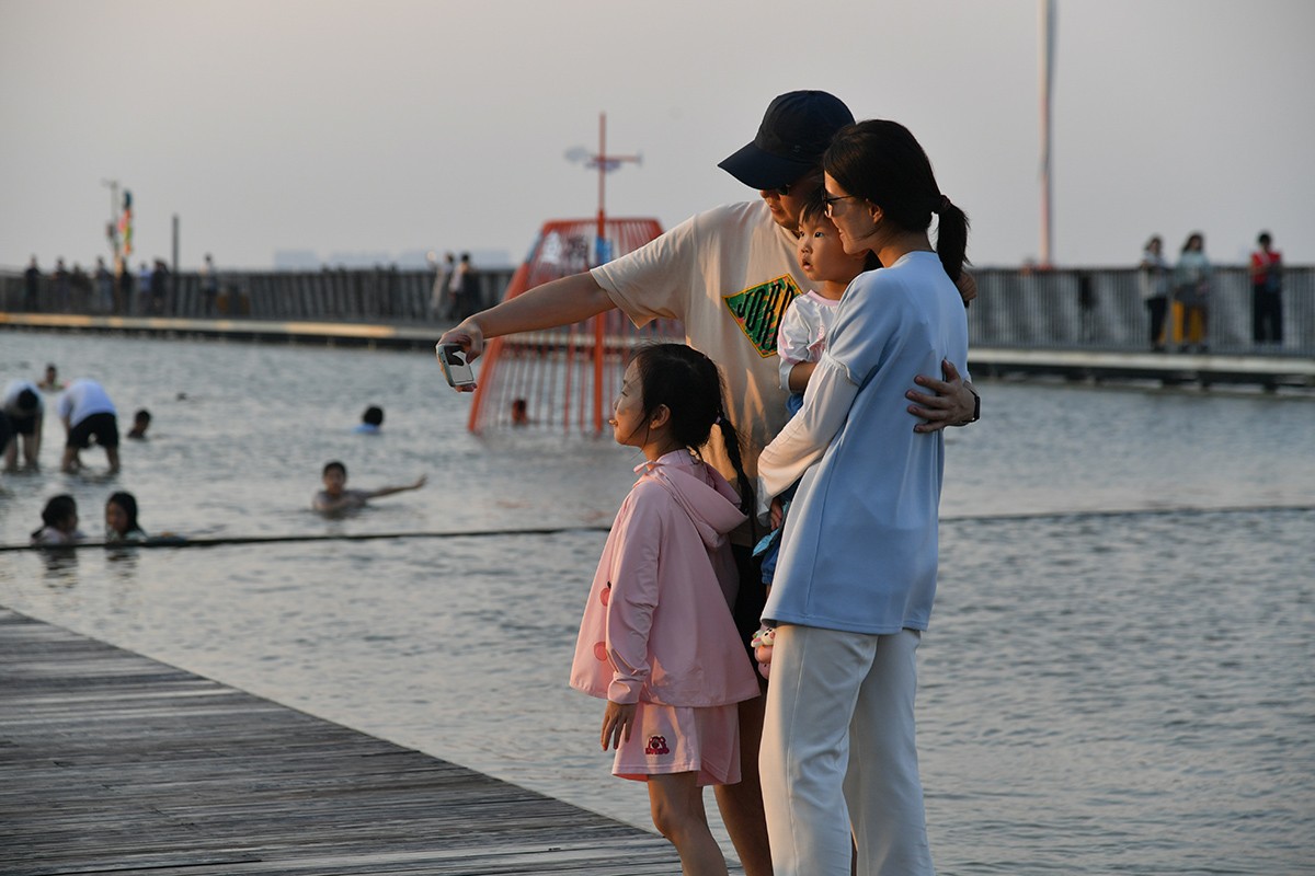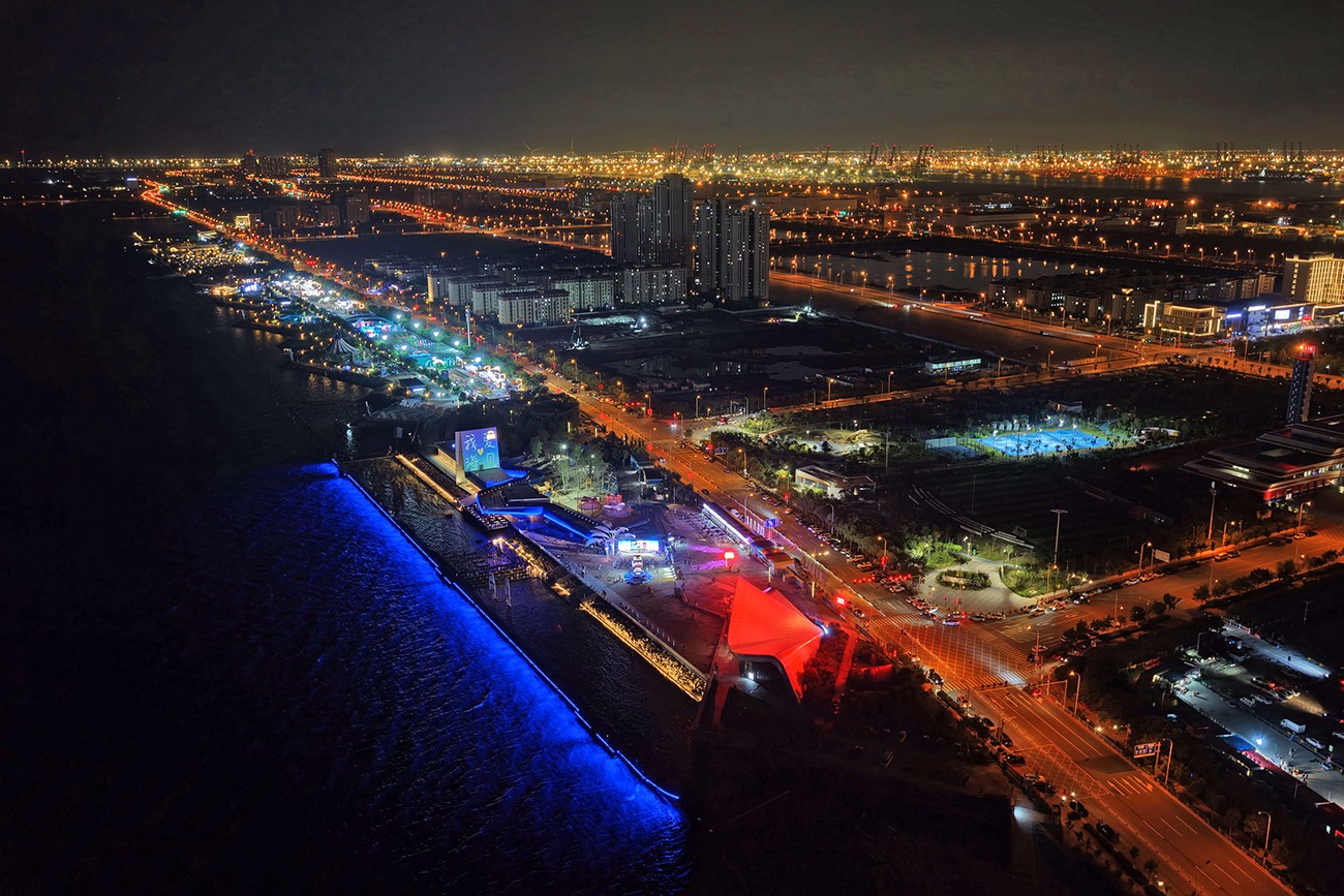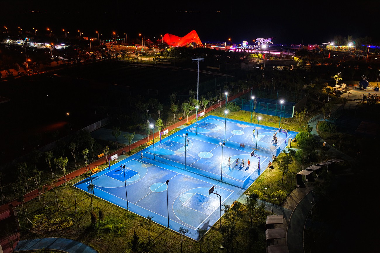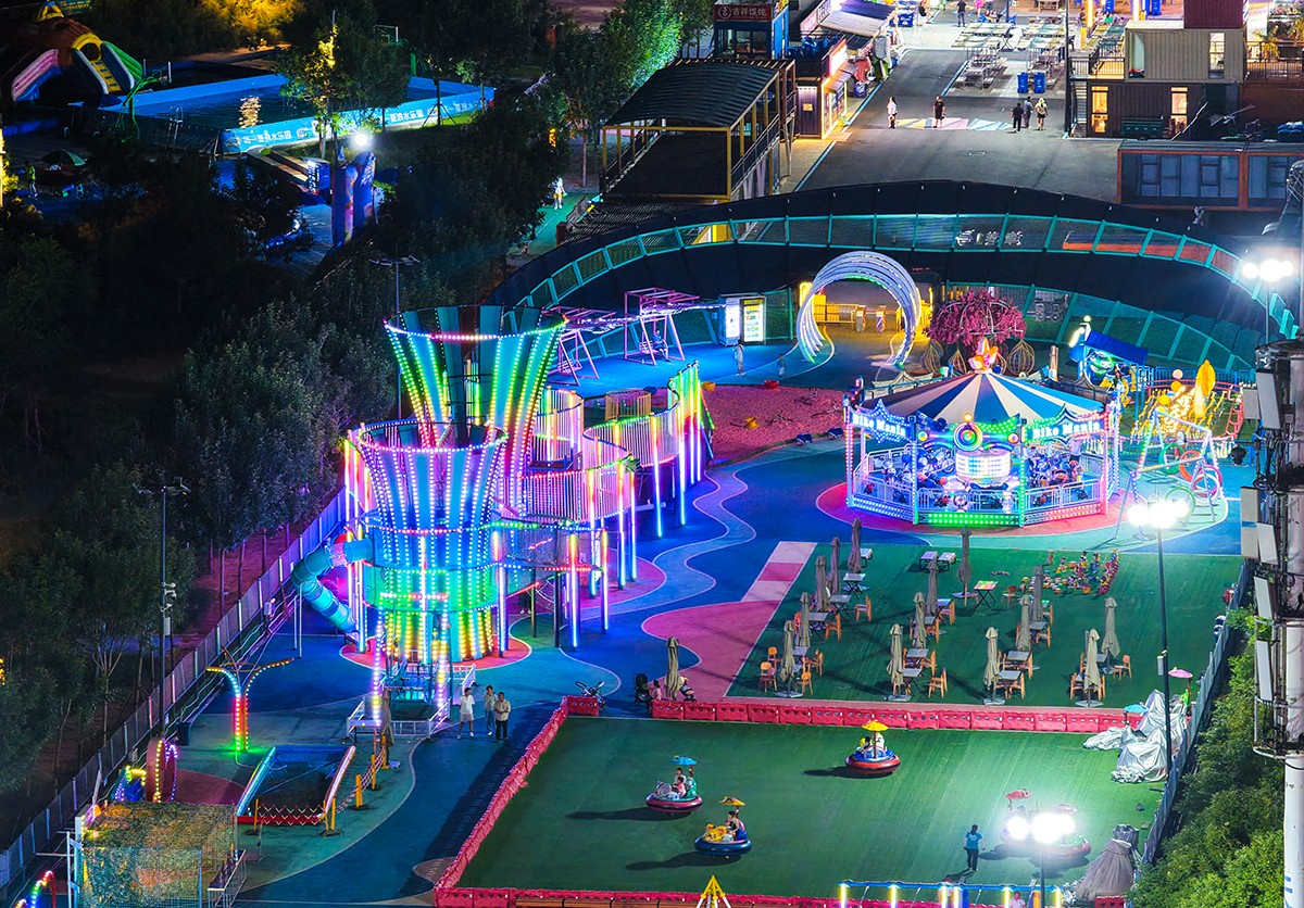 津滨网讯(记者 贾磊 摄影报道)近日,盛夏入伏的滨海新区东疆亲海景区,海风裹着清凉拂过,亲海公园夜市灯火通明,市民游客或在海边游乐场陪孩子嬉闹,或在烧烤摊前围坐品尝美食,滨城的夏日烟火气与湿润的渤海湾的海风味交织弥漫;不远处的东疆体育公园里,新建的篮球场灯火亮堂,市民们挥汗奔跑,笑声与海浪声撞个满怀。通过无人机视角望去,不远处天津港的巨轮正穿梭往来,桥吊有序起落,港口的繁忙与城市的鲜活在此刻形成生动的呼应——这幅港口、城市、旅游、休闲交融的画面,正是滨海新区“港产城融合”发展的鲜活注脚。