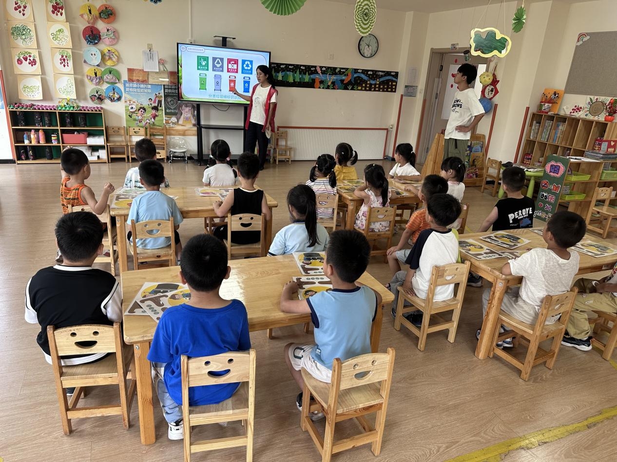 活动开始,社区工作人员为孩子们生动形象地讲解了垃圾分类的相关知识,以及垃圾处理不当会为环境造成的相应危害,倡导大家节约资源、爱护环境,每个小朋友都要积极参与到垃圾分类行动中来。接着通过互动的方式,向小朋友们提问实施垃圾分类的原因,小朋友积极回答,之后耐心讲解垃圾分类的标识、颜色所代表的含义,提升小朋友们对正确垃圾分类的记忆,引导孩子们对垃圾进行快速准确的分类。讲解结束后,进入趣味手工环节,孩子们发挥创意,制作立体垃圾分类装饰画,将垃圾贴纸贴在相应的垃圾桶上,加深孩子们对垃圾分类的理解和认识。