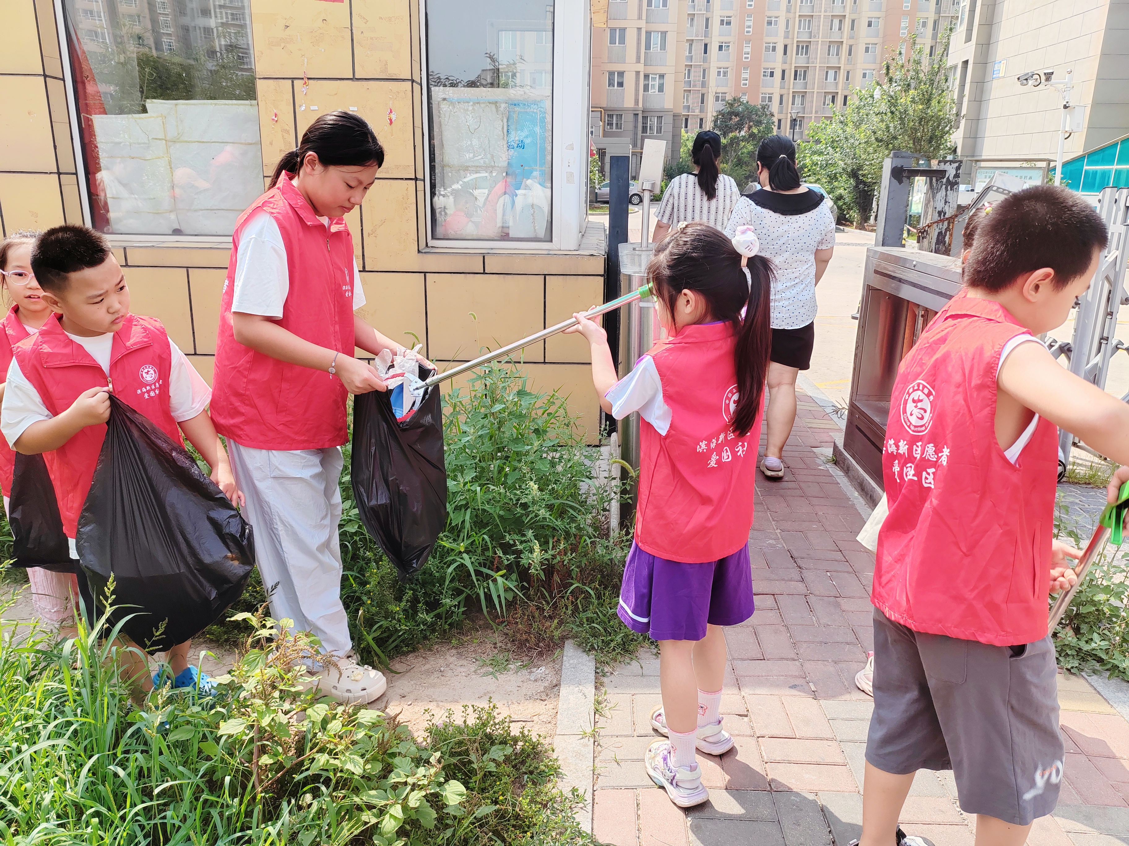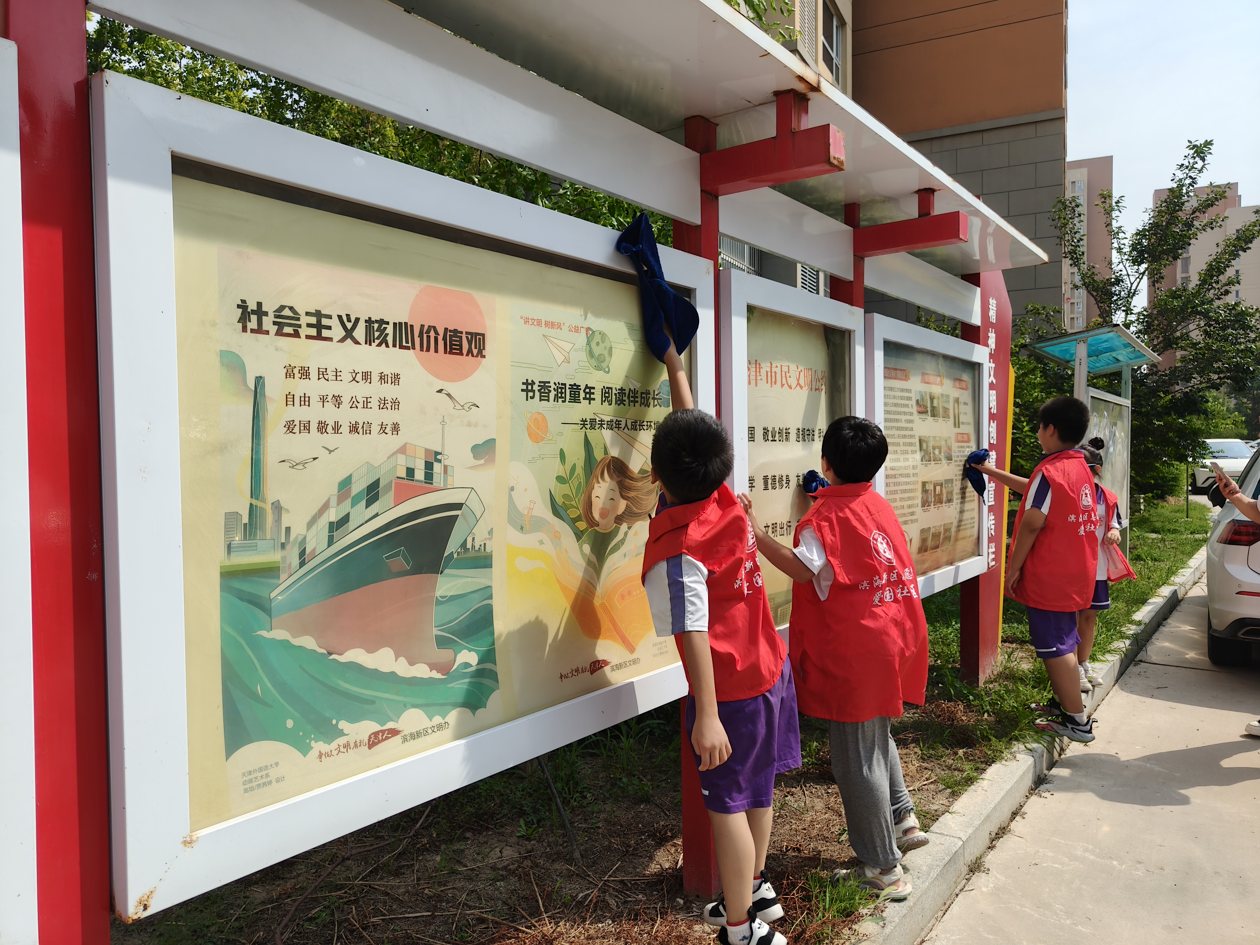 学习结束后,一场热火朝天的环境清整行动随即展开。青少年们分成三组,化身“小小志愿者”,带着抹布、捡拾夹、垃圾袋等工具投入到志愿服务中。大家分工协作,干劲十足,对宣传栏、石桌石凳、健身器材、社区道路及外围环境进行清整,社区变得更加干净整洁。
