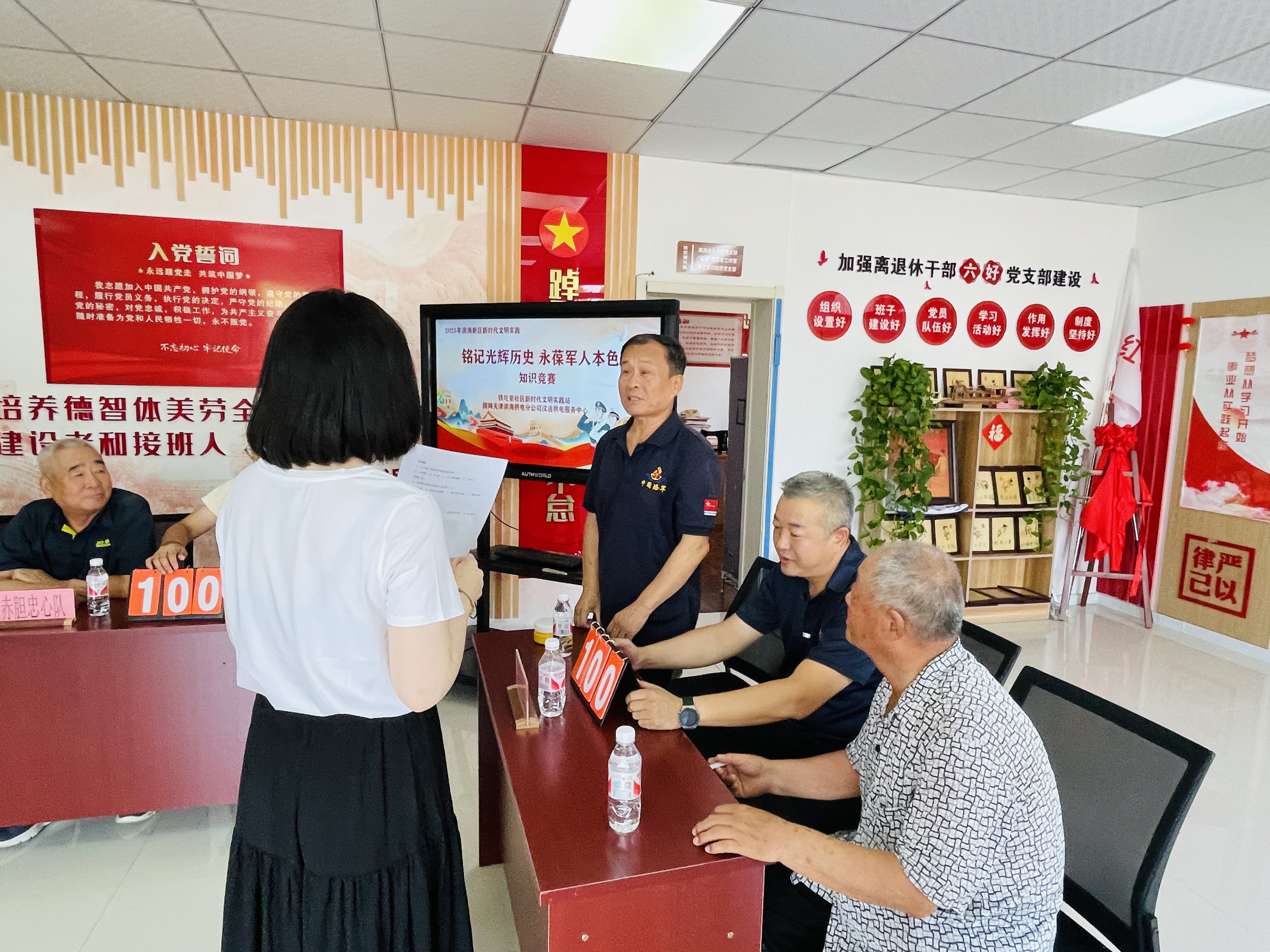 津滨网讯(记者 刘芸 通讯员 平玲 摄影报道)为庆祝中国人民解放军建军98周年,进一步激发广居民群众爱党爱国爱军情怀,营造拥军优属、关心关爱退役军人的浓厚氛围,社区联合社区 “合伙人” 国网天津滨海供电分公司汉沽供电服务中心,共同举办 “铭记光辉历史 永葆军人本色” 退役军人知识竞赛活动,寨上街包保科室、社区退役老兵一同参与。