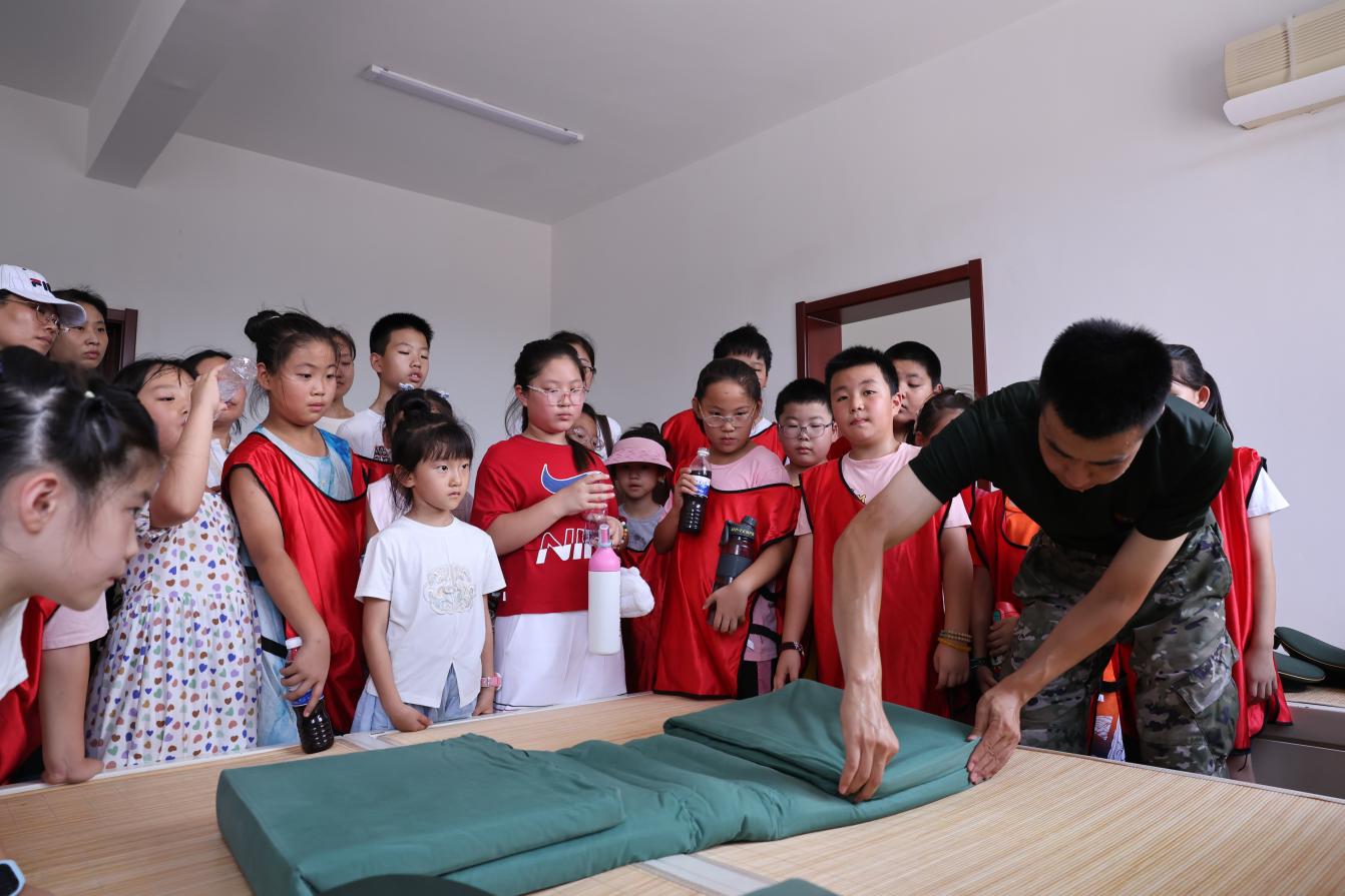 随后,一场国防教育活动也在军营同步开展。在部队官兵的带领下,学生们秩序井然地走进营房,感受严谨有序的内务管理;步入荣誉室,聆听部队的光辉历史和英雄事迹;驻足军事装备展示区,近距离了解现代化国防建设成就。官兵们耐心讲解,学生们认真聆听,眼神中充满了好奇与崇敬。参观过程中,官兵们还结合实际,为学生们进行了生动的国防安全知识普及和教育。通过互动问答、场景模拟等形式,将国家安全的重要性、日常安全防范等知识深入浅出地传递给学生,有效提升了他们的安全意识和自我保护能力。“看到那么多奖章和英雄故事,特别震撼,还有军人叔叔们叠的‘豆腐块’被子,太整齐了 ,感觉他们特别了不起!”来自滨海新区大港第二小学的学生告诉记者,“他们训练也特别辛苦,我以后也要更努力学习,锻炼好身体,也要为保卫国家贡献自己的力量!”