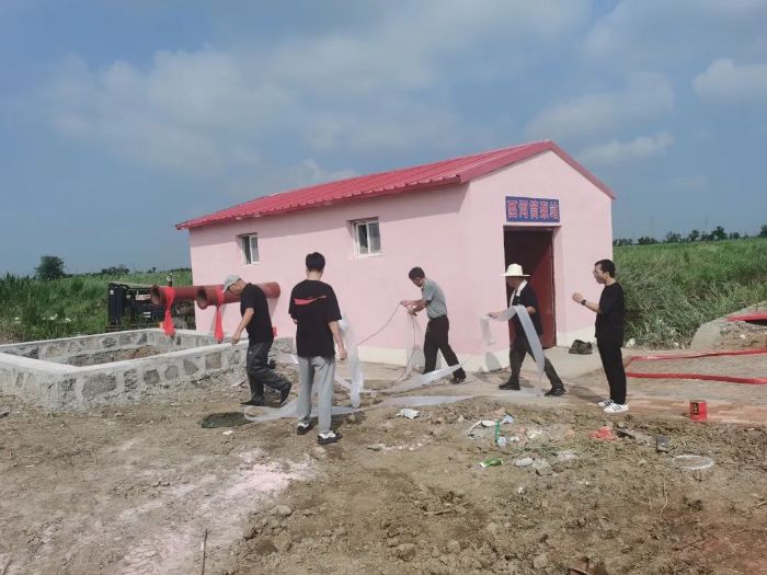 从7月3日正式开工,历时整整20天,一场与时间赛跑、与雨水较量的“攻坚战”全面打响。村“两委”班子成员、党员志愿者和技术工人一起冒着高温湿热天气,克服施工现场环境复杂、老旧设备拆装困难、技术要求高等诸多挑战,日夜奋战在工地一线。他们或清理泵坑淤泥、检修替换锈蚀管道,或安装调试新电机水泵、重建控制系统,最终成功让这座沉寂多年的“铁疙瘩”重新焕发生机。改造工程不仅恢复了泵站原有的抽水能力,还在关键部位进行了技术升级,显著提升了排水效率和稳定性。