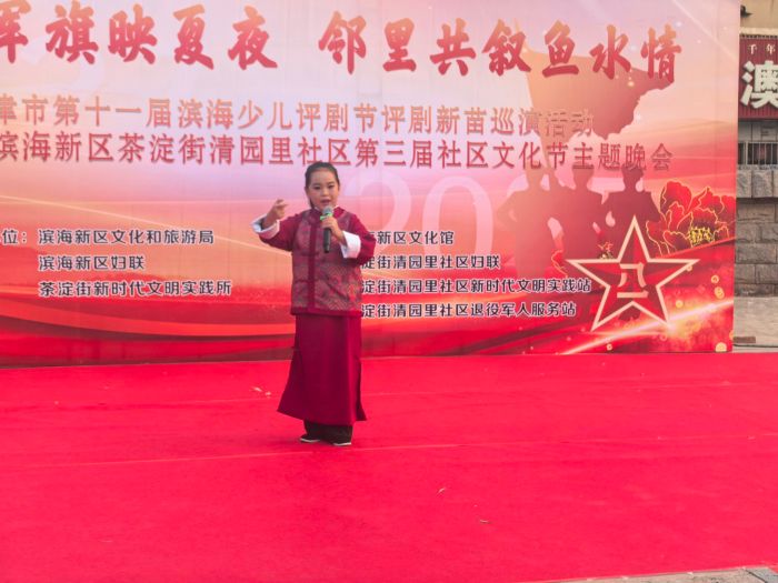 “在这个特别的日子,我为大家演唱了评剧《智取威虎山》选段《只盼深山出太阳》,我心里非常荣幸也非常激动。作为新时代的青年,我用这一评剧选段来缅怀先辈,让更多的观众来铭记那些无名的英雄们。”演出后,滨海新区文化馆少儿评剧传习班崔歆睿说。