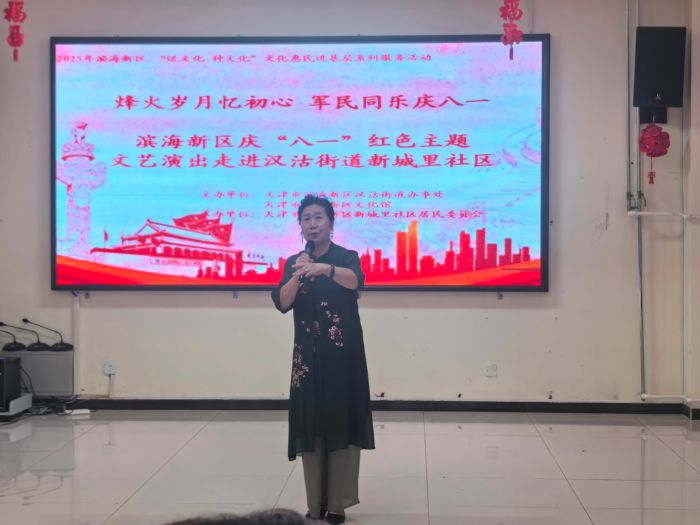 津滨网讯(记者 周华婷 报道 张鹏 摄影)8月1日,由滨海新区汉沽街道办事处、滨海新区文化馆主办,滨海新区汉沽街道新城里社区居委会协办的2025年滨海新区“送文化 种文化”文化惠民进基层系列服务活动“烽火岁月忆初心 军民同乐庆八一”2025滨海新区文化馆庆“八一”红色主题文艺演出精彩上演,为社区居民带来了一场致敬军旅、礼赞祖国的精彩演出,用艺术的形式传递对人民军队的深情祝福。