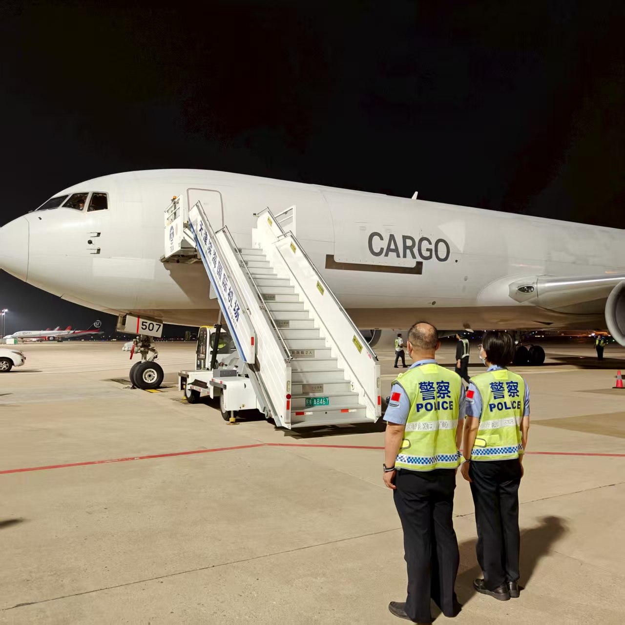 为确保新航线顺利开通运营,天津机场边检站主动对接航空公司,深入了解航线运营计划、货物流向等情况,制定专项勤务方案,合理调配警力,优化查验流程,安排专业警务小组提前落位等待,确保货运航班“机到即办”,最大限度压缩通关时间。