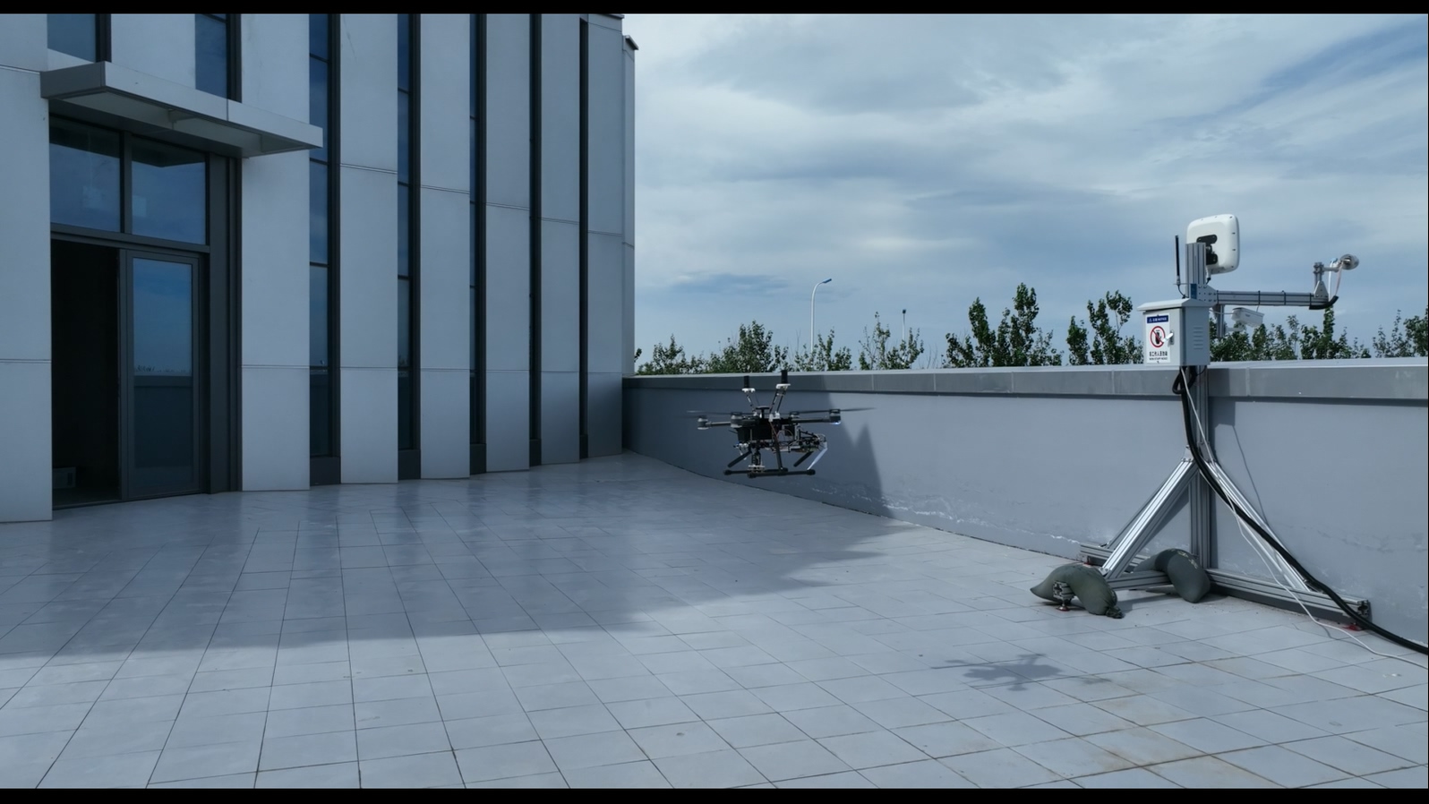 就在不久前,在东疆综保区新质生产力产业园楼宇的外部平台上,一场围绕 “厘米级” 定位精度的飞行测试持续开展。随着工作人员发出指令,搭载着新型定位系统的测试无人机缓缓升空,随后在空中不断快速穿梭飞行,每一次转向、悬停都精准对应着预定坐标,误差始终控制在厘米范围内。
