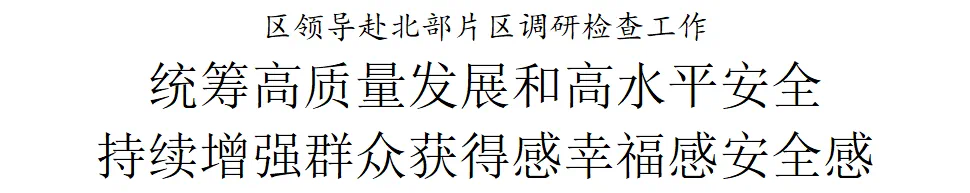 津滨网讯(记者 王建喜 杨静如)8月11日,区委副书记、区长单泽峰赴北部片区调研检查工作。他强调,要深入学习贯彻习近平总书记视察天津重要讲话精神,坚持以人民为中心的发展思想,走内涵式发展路子,加快推动南北“两翼”经济社会高质量发展,以“时时放心不下”的责任感抓好安全生产各项工作,持续增强广大人民群众的获得感、幸福感、安全感,努力为上海合作组织峰会召开营造安全、和谐、有序的社会环境。
