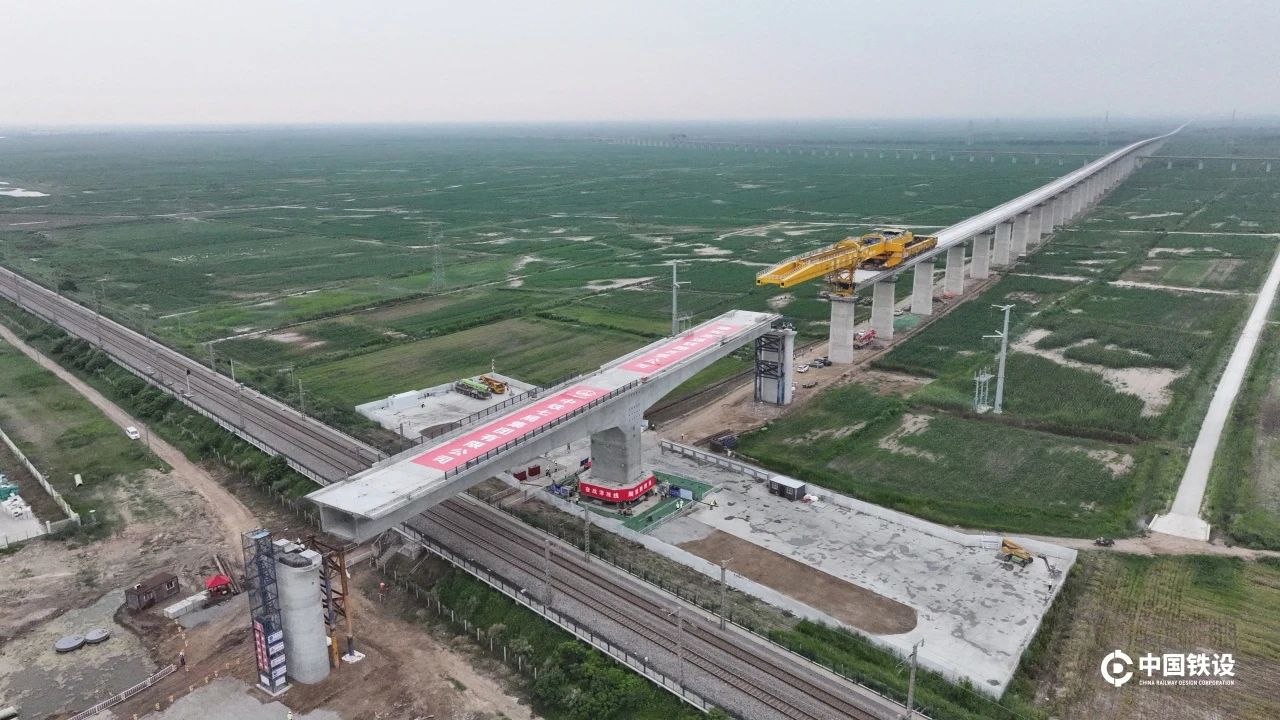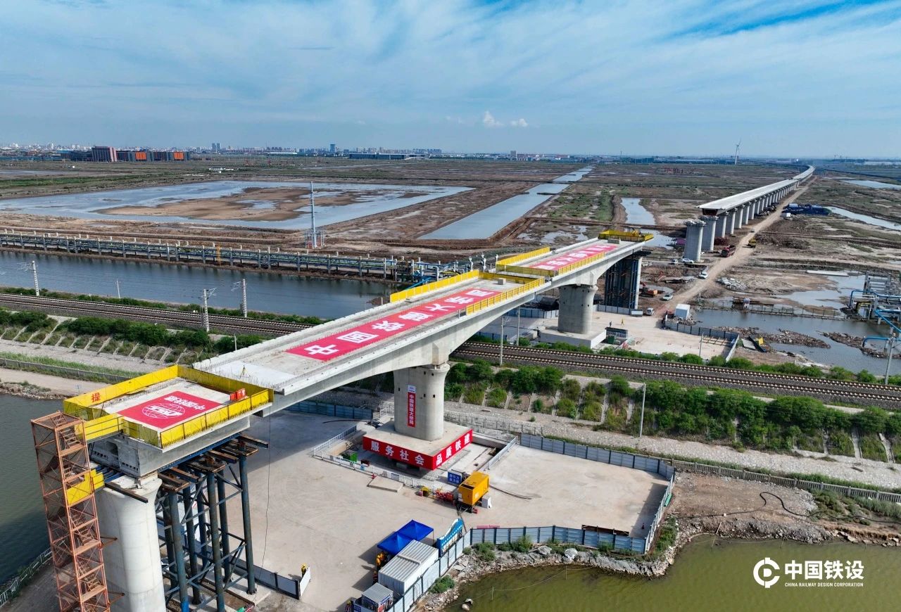 据介绍,津潍高铁是国家“八纵八横”高铁网京沪辅助通道与沿海通道的关键段落,东营黄河公铁大桥作为全线“咽喉工程”,预计2027年通车后,天津至潍坊通行时间将由4小时缩短至1.5小时,彻底结束东营、滨州不通高铁的历史。目前,大桥主桥钢梁架设已完成60个节间,东营侧主塔计划8月底封顶,年底实现主体工程完工。中国铁设团队将持续驻守现场,为工程建设提供全程技术支持。 (中国铁设供图)
