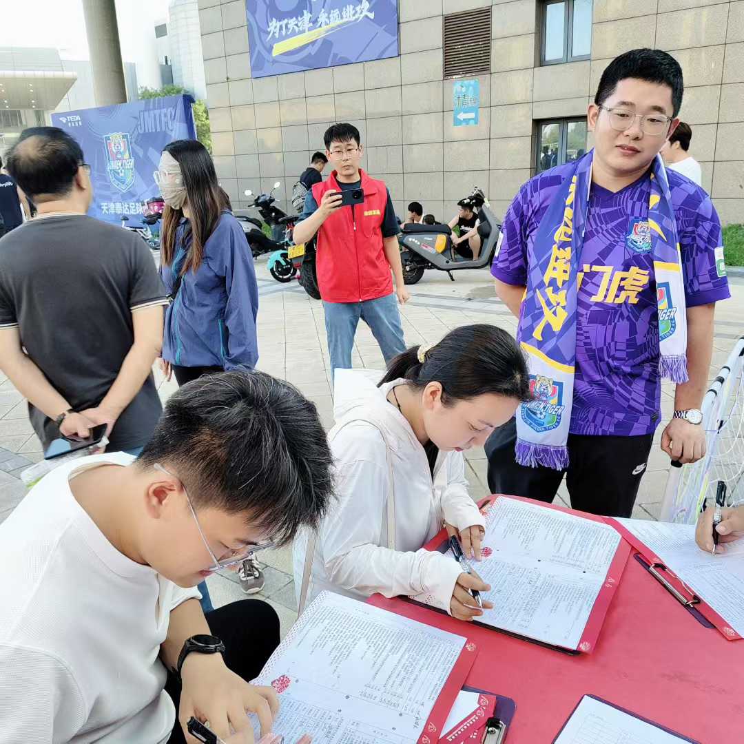 津滨网讯(记者 马兰)8月10日傍晚,泰达足球场周边人头攒动,津门虎队与青岛西海岸队的中超比赛即将开赛。场外一辆醒目的无偿献血车旁同样热闹非凡,滨海新区中心血站的医护人员与志愿者在此开展爱心献血活动,让足球激情与公益温情在赛场外碰撞交融。