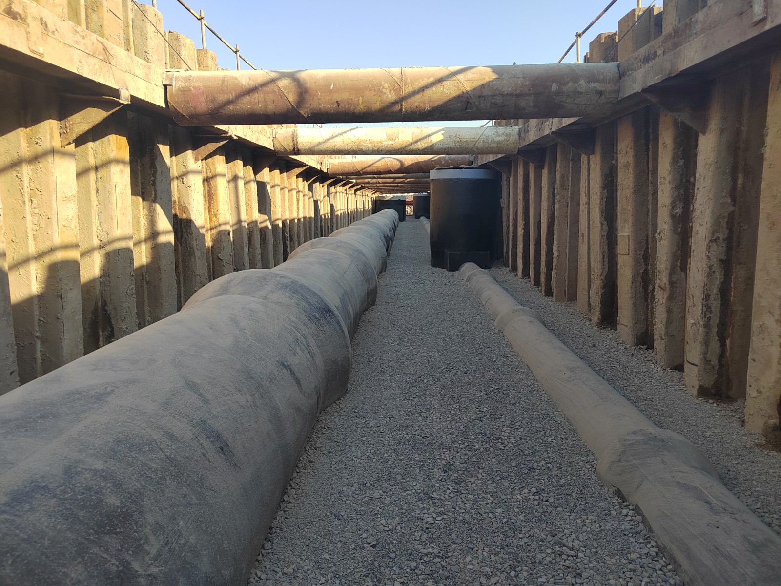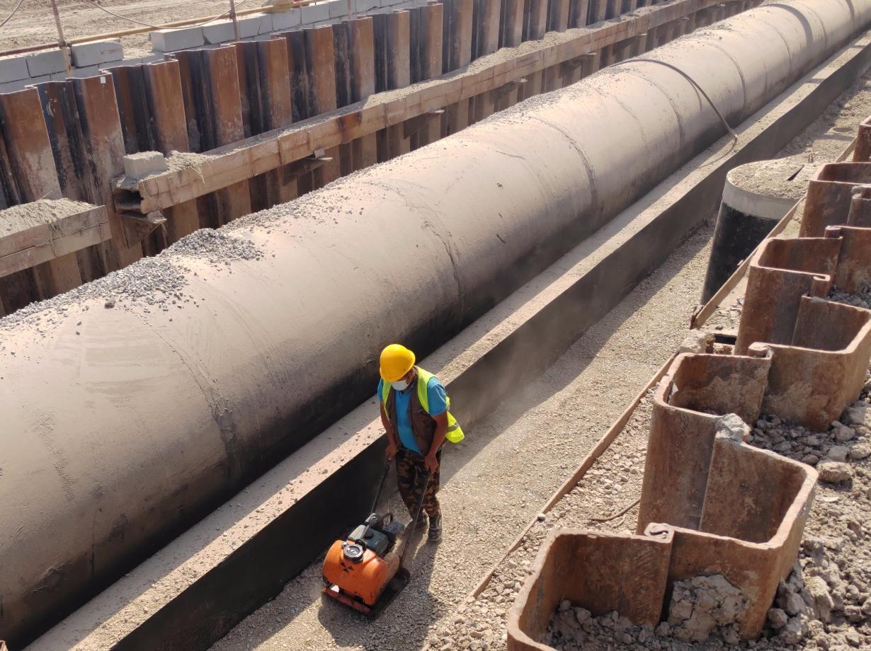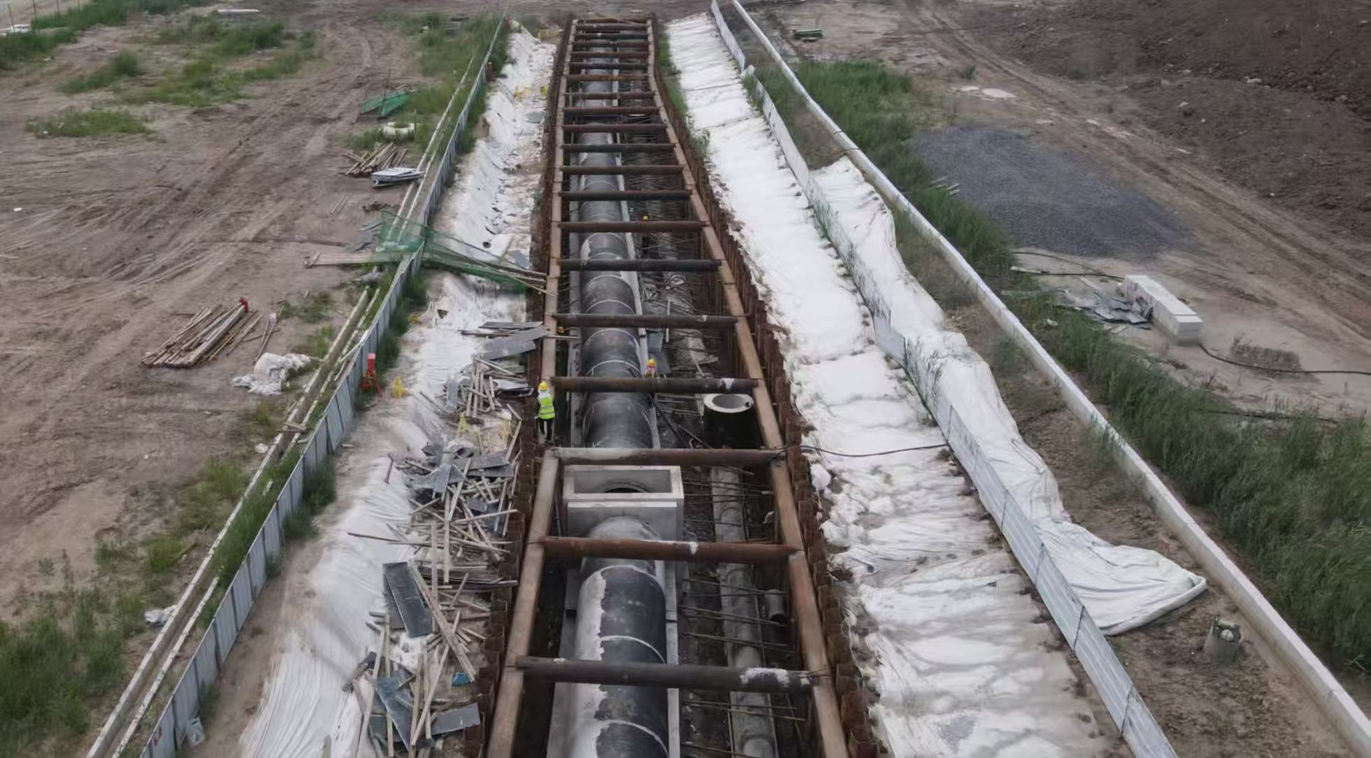 国祥西道排水工程东起津秦高铁、西至海德路。共分为两段实施,津秦高铁至安德路段施工单位为中铁城建集团,安德路至海德路段施工单位为中建八局,整体项目建设单位为滨海高新区资产管理办公室。目前,该项目的部分路段已完成管道主体施工,其余路段正在进行管道安装工程,预计今年10月中旬将全部完成排水工程并启动道路工程建设。