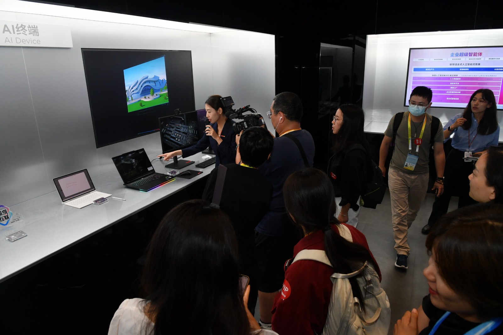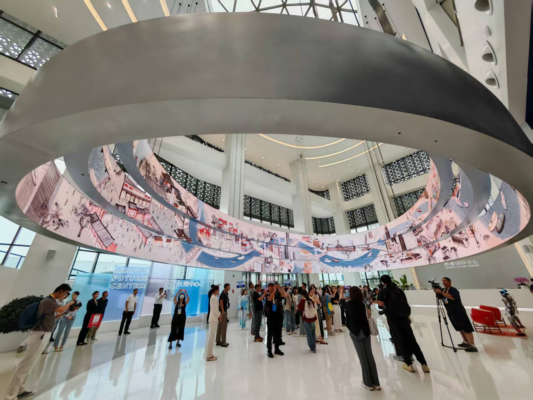 联想集团天津未来中心共三层,随着讲解员娓娓道来的讲述,记者们发现,每层都藏着不一样的精彩。一层的“数字文明艺术展”把科技揉进创意,让人眼前一亮;二层的“3S行业智能化展区”更让记者们挪不开脚。围绕3S战略,这里摆着联想在终端、基础设施领域的“硬家伙”,还有能适配各行业、靠大模型驱动的智能体解决方案。最让人惊叹的是联想创新产业园的ICT行业首家“零碳工厂”,不仅代表着当前中国乃至世界智能制造的高水平,也体现出滨海新区作为中国先进制造研发基地核心区的重要地位,更是当地加快构建“1+3+4”现代产业体系的关键举措。