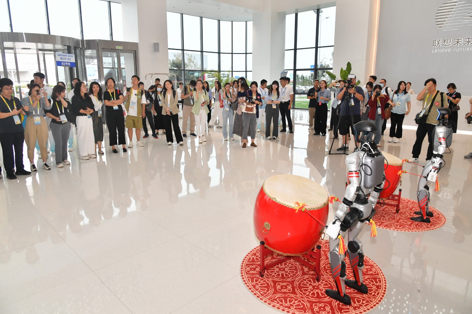 津滨网讯(记者 张惺卓 张雪艳 报道 贾磊 胡义和 摄影)8月29日,天津滨海新区联想(天津)智慧创新服务产业园里满是惊喜——2025年上海合作组织峰会城市参访活动刚拉开序幕,近40位媒体记者走进联想集团天津未来中心,一进门,就被门口两个“鼓手”吸引住了。只见它们动作灵活地挥动鼓槌,清脆的鼓点伴着机械臂的精准律动,不少记者立刻掏出手机记录,刚进门就被这股科技劲儿“圈粉”。