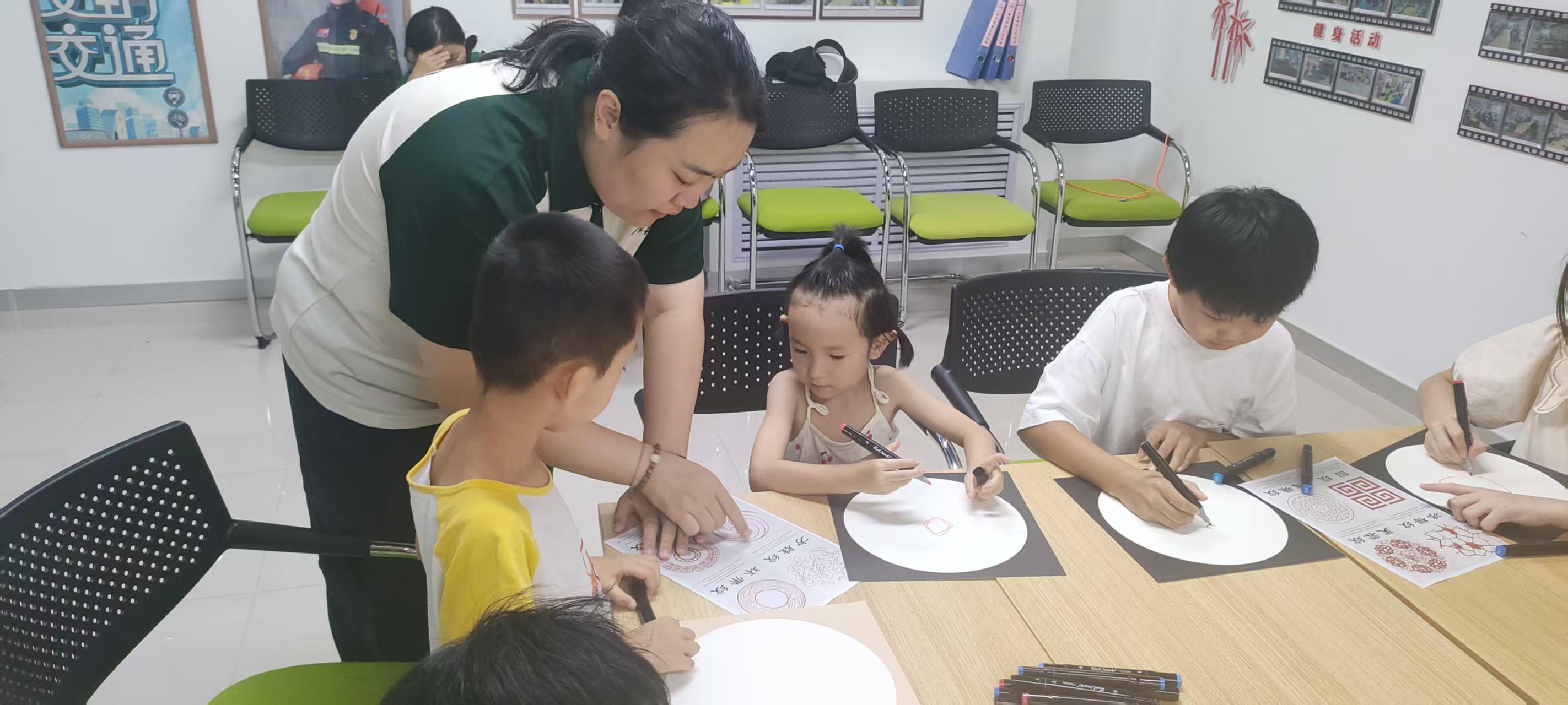 活动开始,春田艺绘培训学校的老师为每个孩子分发了丰富的绘画材料,如画纸、画笔等。孩子们认真描绘,大胆尝试新的绘画技法。有的孩子选择了绘制传统图案,还有一些孩子将自己的想象力融入到作品中,创作出充满奇幻色彩的世界。一幅幅充满童趣与活力的图画在孩子们的画笔下诞生。绘画过程中,孩子们相互交流、彼此启发,现场气氛热烈而温馨。老师们穿梭在孩子们中间,不时给予鼓励和指导,帮助他们完善作品。经过一个多小时的努力,一幅幅充满童真与创意的画作诞生了。