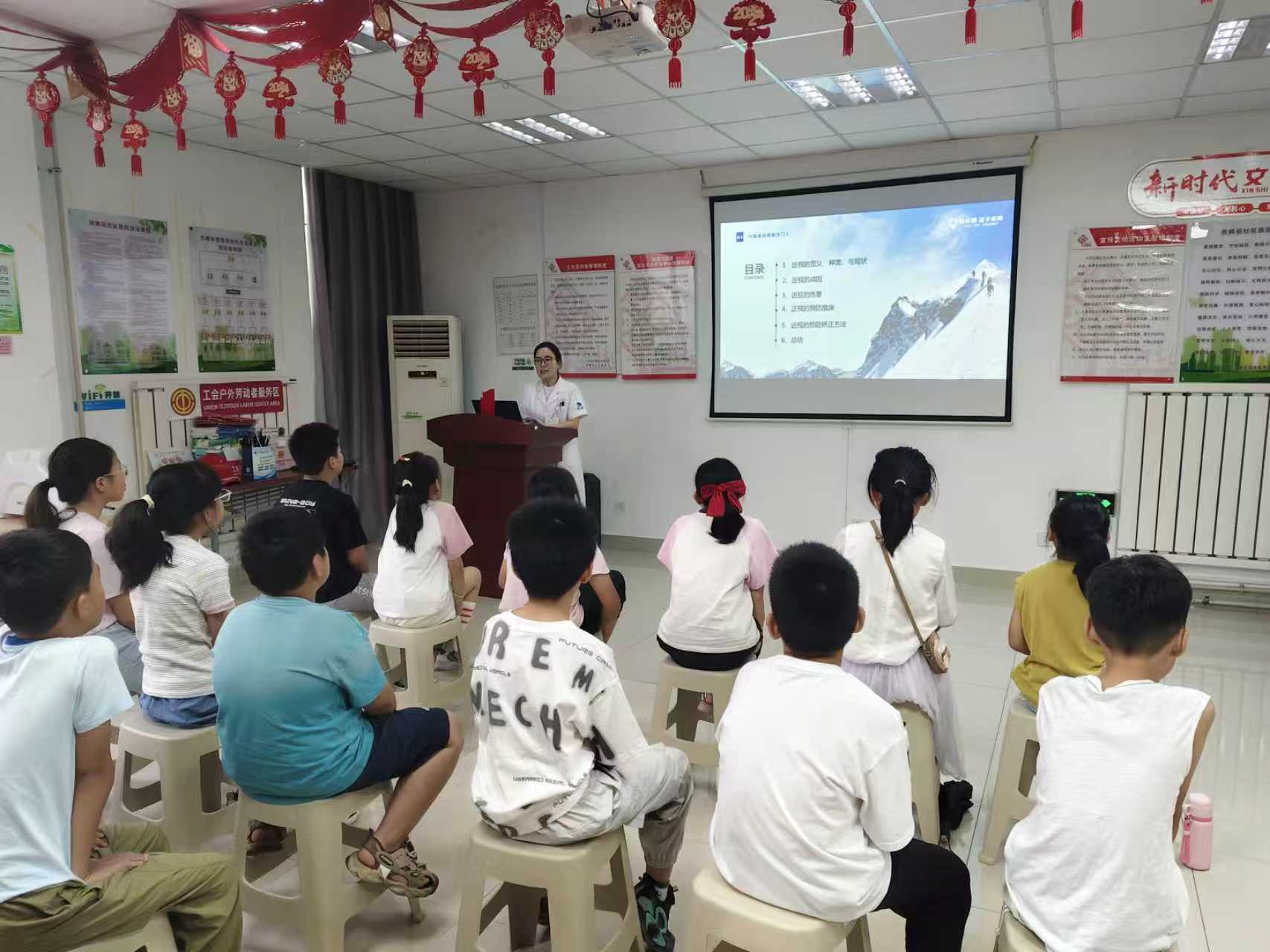 活动伊始,蓝卡社区医院的医生为到场家长和孩子们带来了一场内容详实的视力健康知识讲座,深入浅出地讲解了科学用眼、近视防控等知识,增强了家长们的早期干预意识。随后,医护人员为孩子们进行了专业的视力筛查,过程井然有序。医生们耐心细致,对筛查结果给予了详细解读和个性化指导,并就家长关心的问题进行了专业解答。